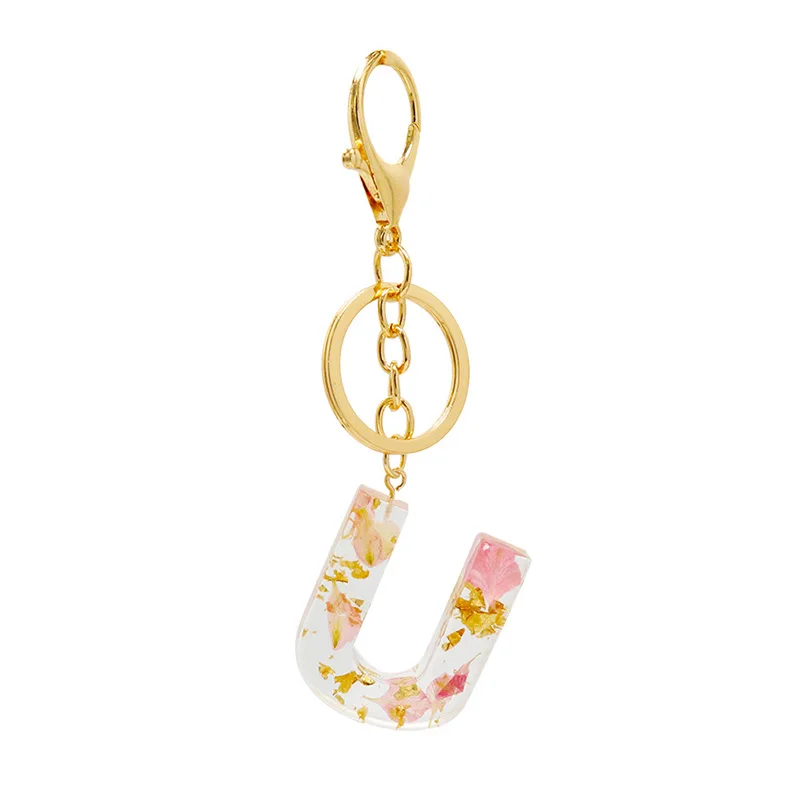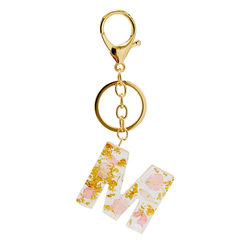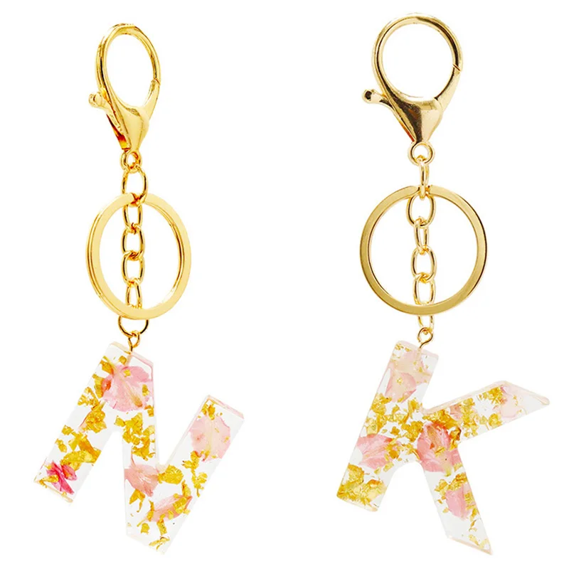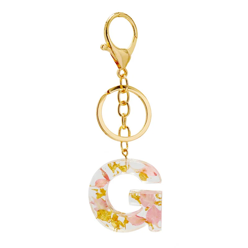 Настоящие сухие цветы письмо, брелки для ключей, английский брелок с алфавитом держатель блеск смолы милый цепочки кольца для ключей автомобиля талисманы сумка подарки