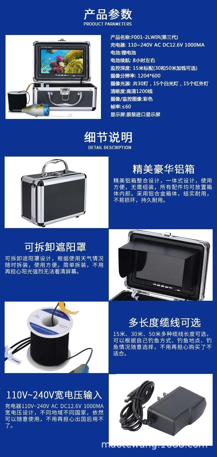 7-дюймовый визуальное рыболовное устройство, 15 м, 15 инфракрасный светильник s, 15 белый светильник s в общей сложности 30 светильник, светильник переключения может быть один, полный и полный, светильник с яркостью можно регулировать, камера из алюминиевого сплава 1000