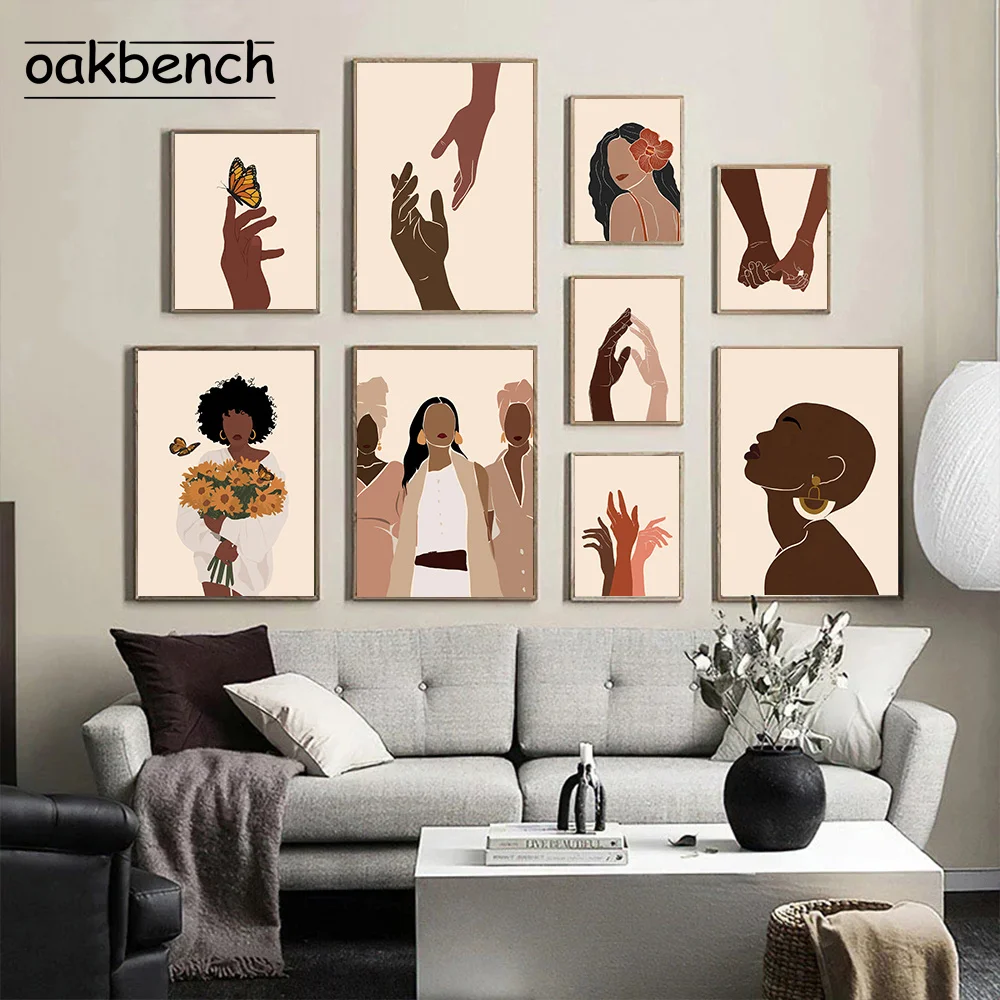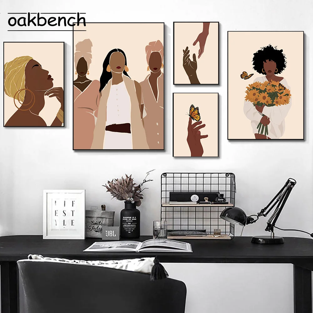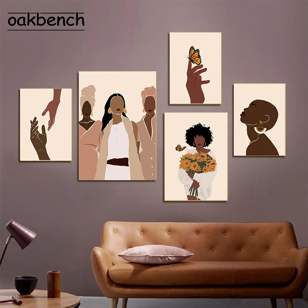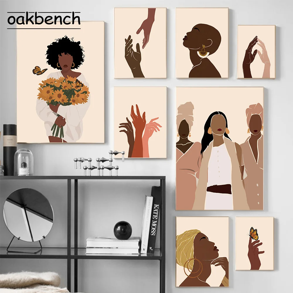 Абстрактный постер, африканские и американские женщины, холст, принты, модные африканские девушки, настенные картины, цветочная живопись, украшение комнаты для девочек