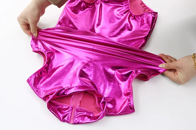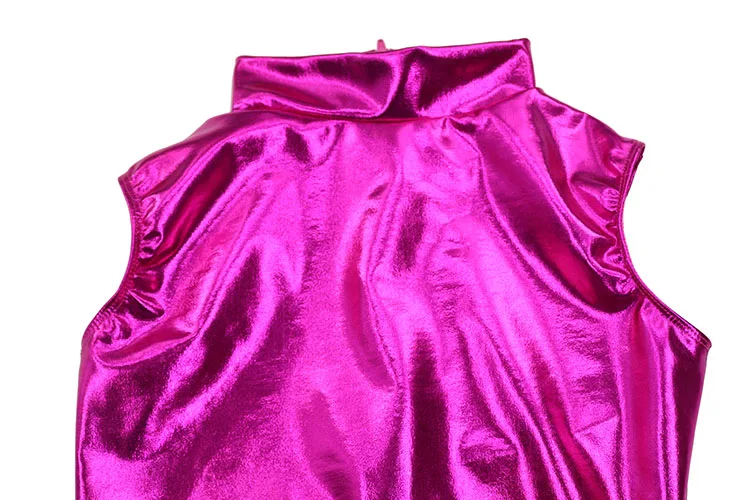 Новинка от Speerise, женские Серебристые блестящие металлические танцевальные трико, боди с высокой горловиной, без рукавов, унитард, Женская гимнастика