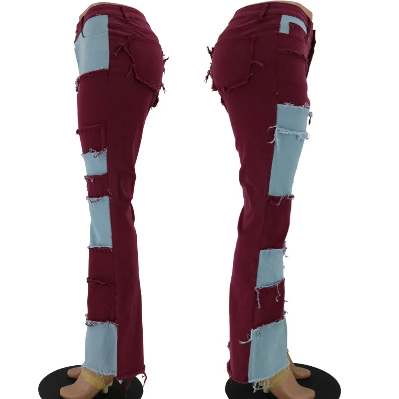 Женские джинсы в стиле колокол, модные двухцветные джинсы в стиле пэчворк с бахромой и высокой талией