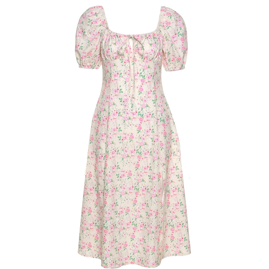 2021 женское платье с цветочным принтом, Пышное Платье с коротким рукавом, Длинные вечерние платья с высоким разрезом, элегантное кружевное милое летнее Клубное сексуальное платье