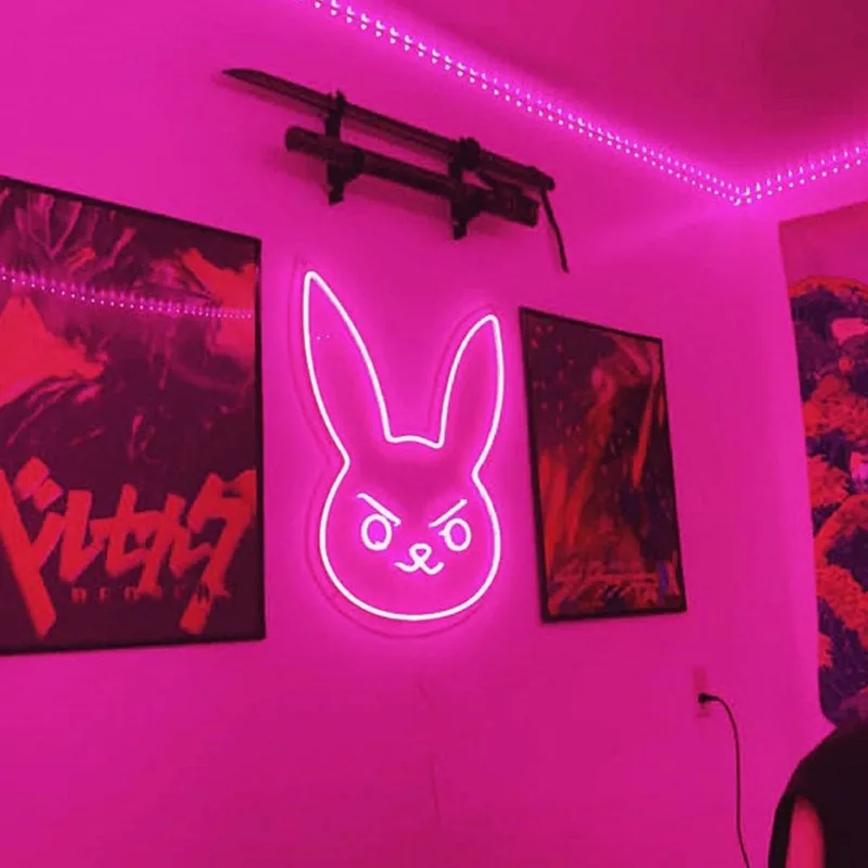 Неоновая вывеска Dva Bunny на заказ, неоновая вывеска в виде кролика, настенное искусство, Декор, подарок, бар, рейва, декор квартиры, комнаты, неоновая светодиодсветодиодный лампа, окружасветильник