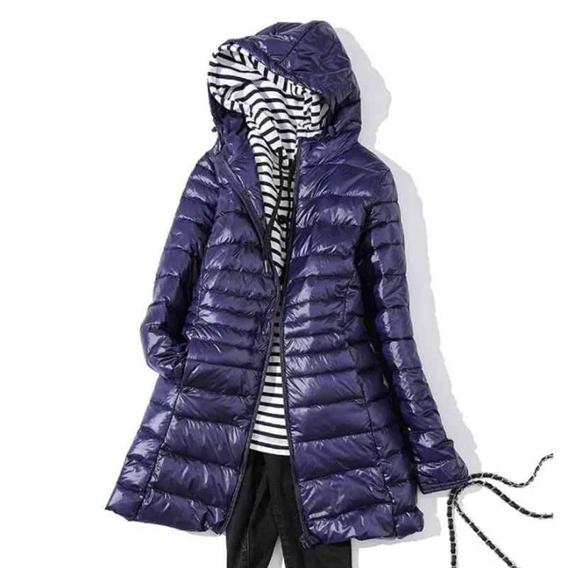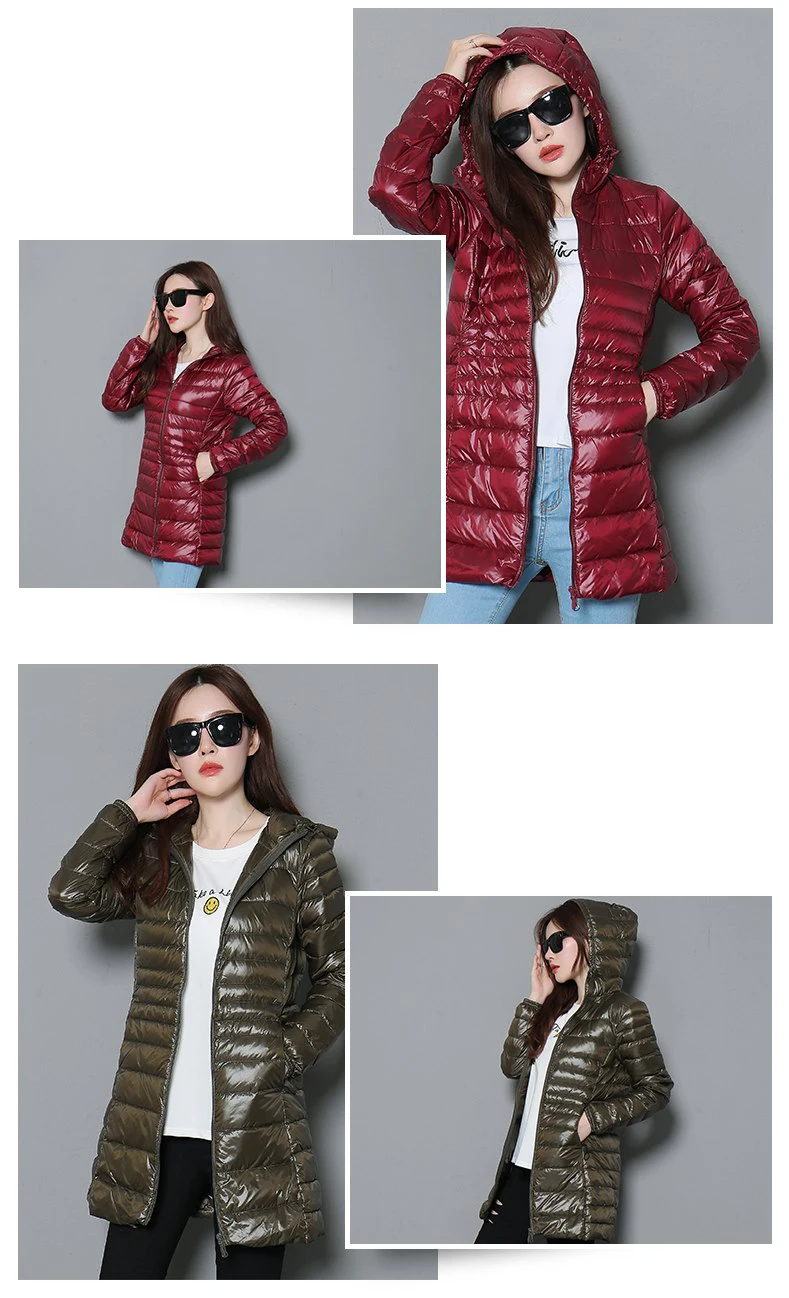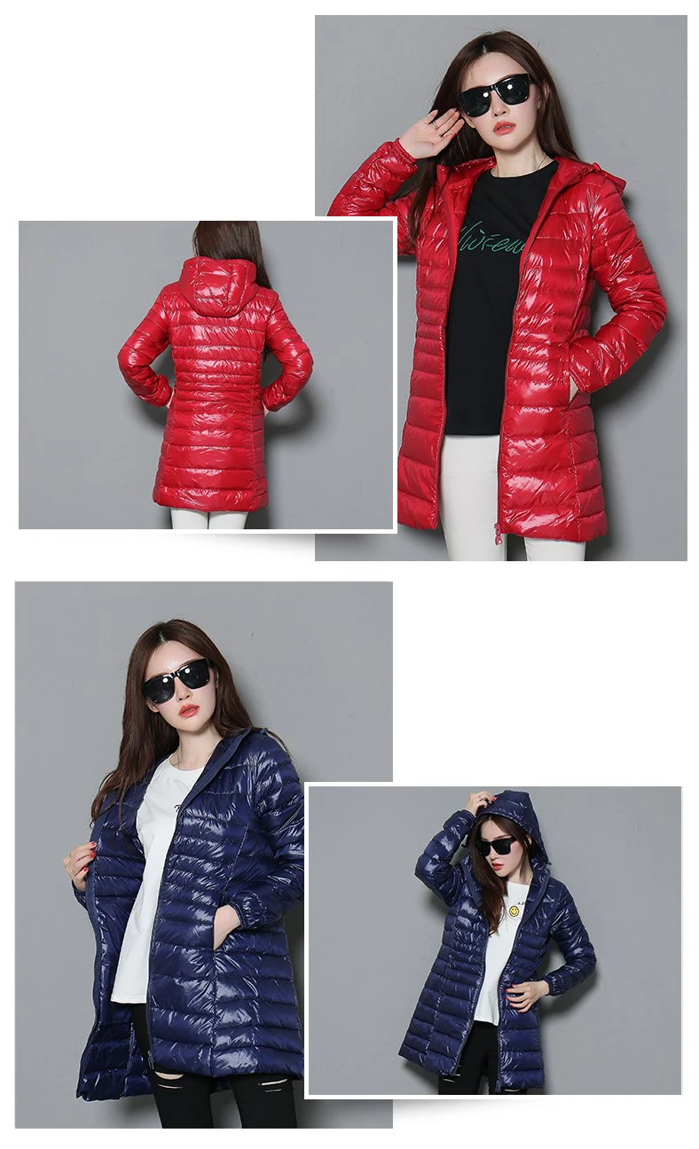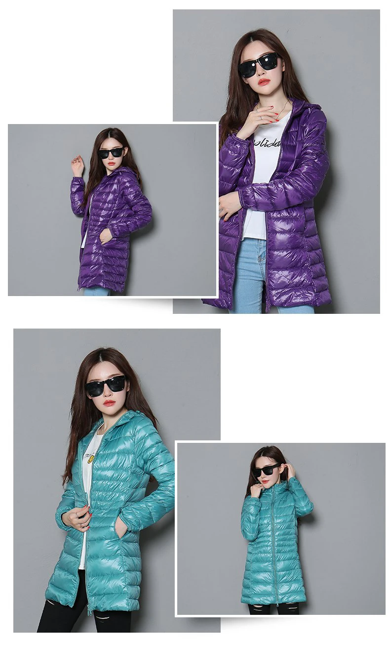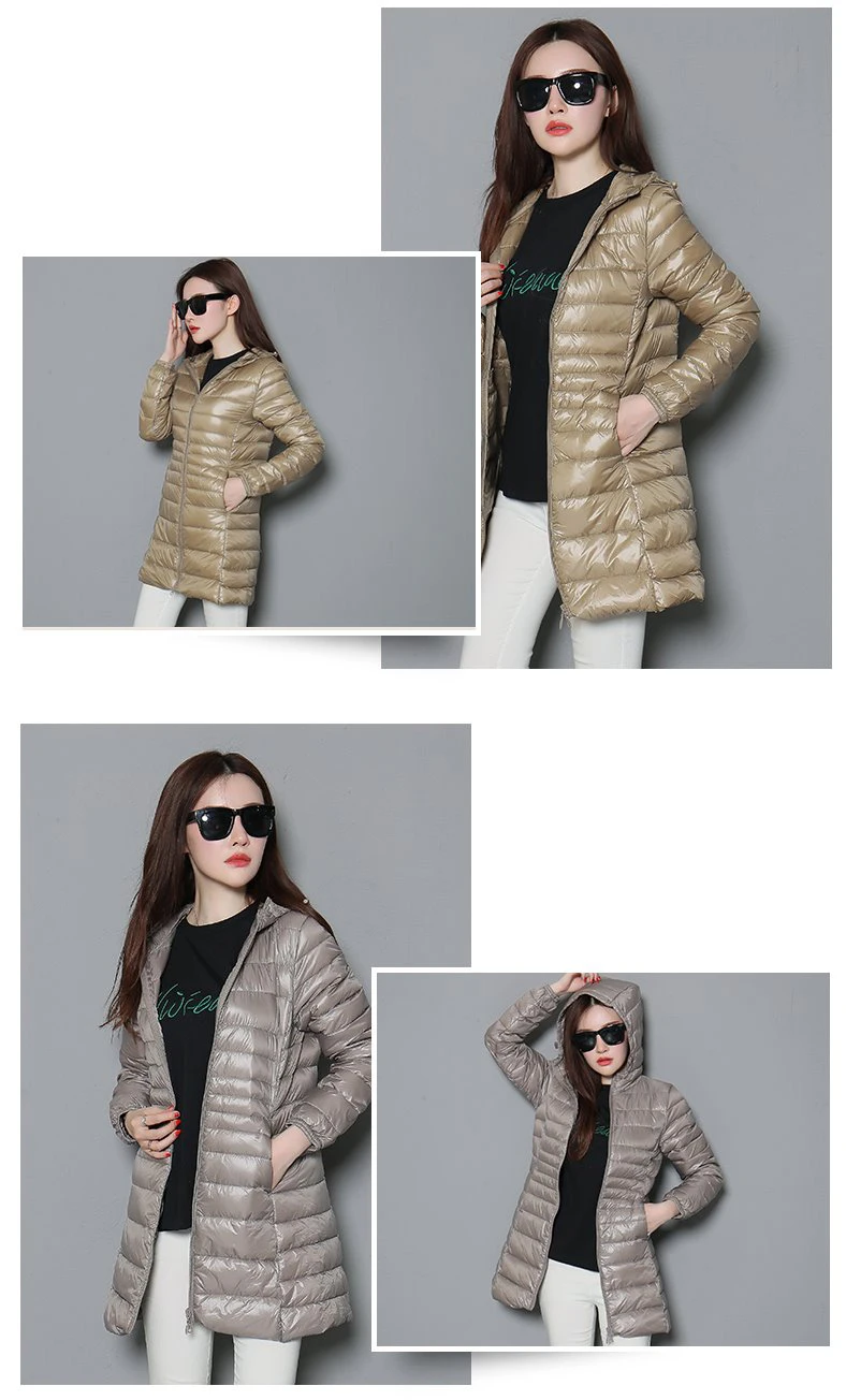 Размера плюс 7XL 2021 зимние куртки для женщин, Белые куртки-пуховики на утином пуху Женская длинная куртка с капюшоном парки ультра светильник Портативный пуховое пальто