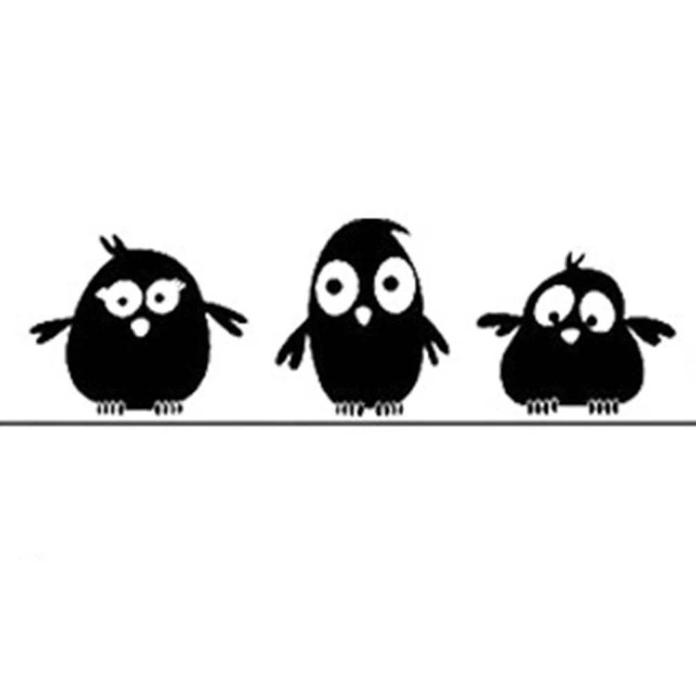 Милые наклейки 5 маленьких птиц на проволоке, настенные Стикеры, дв...