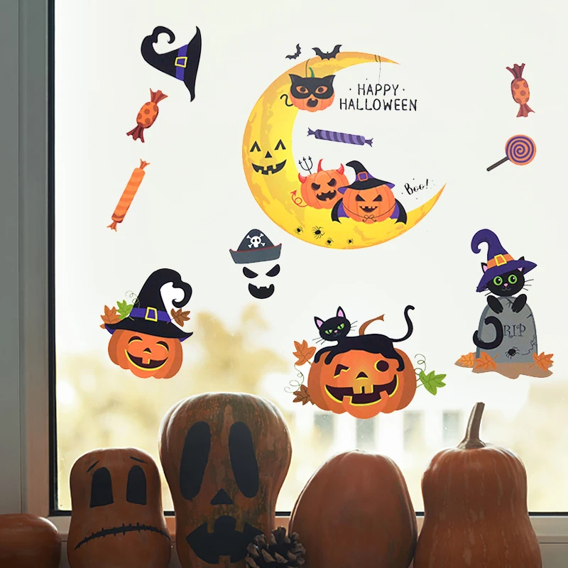 Украшения к Хэллоуину ПВХ наклейки окна Тыква настенные наклейки декоративные Сделай Сам наклейки ужасов Наклейки на стены реквизит для дома с привидениями