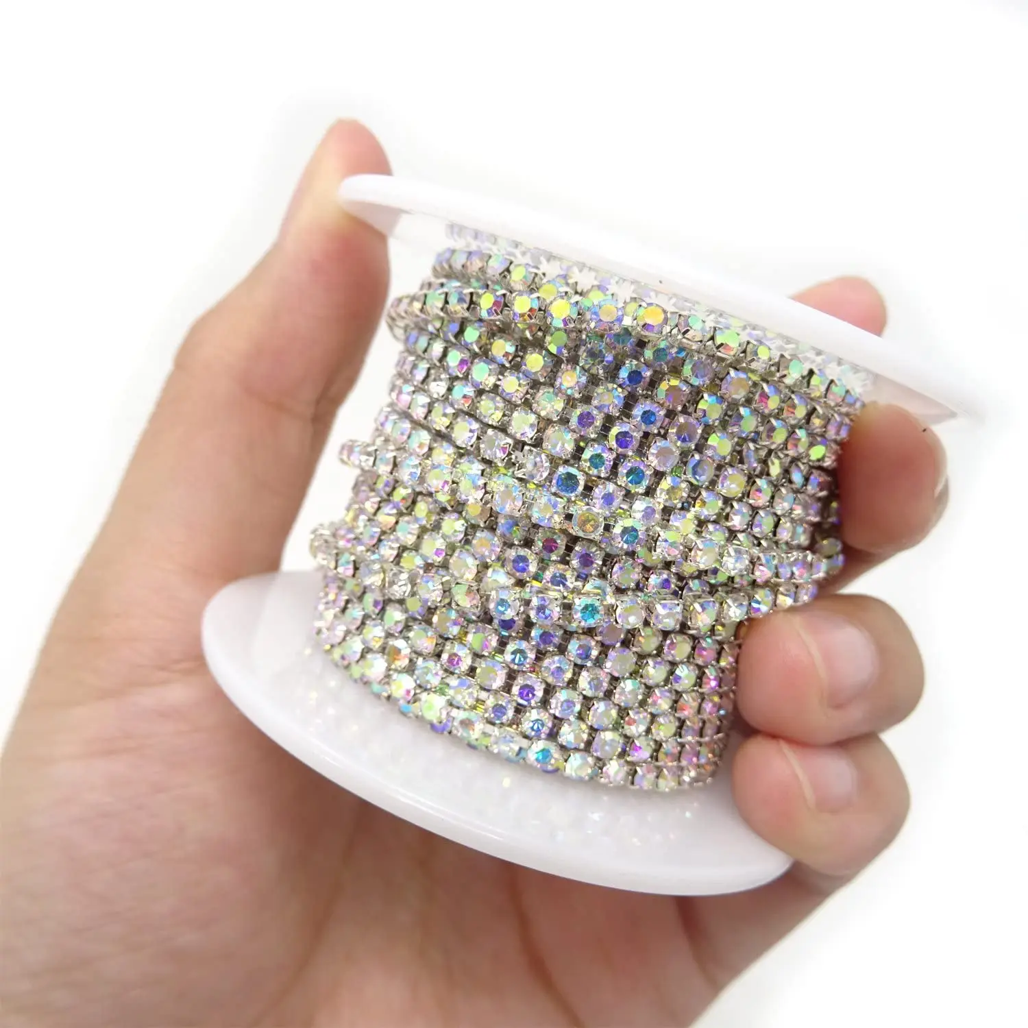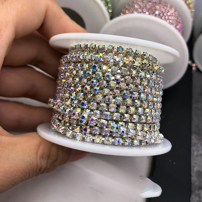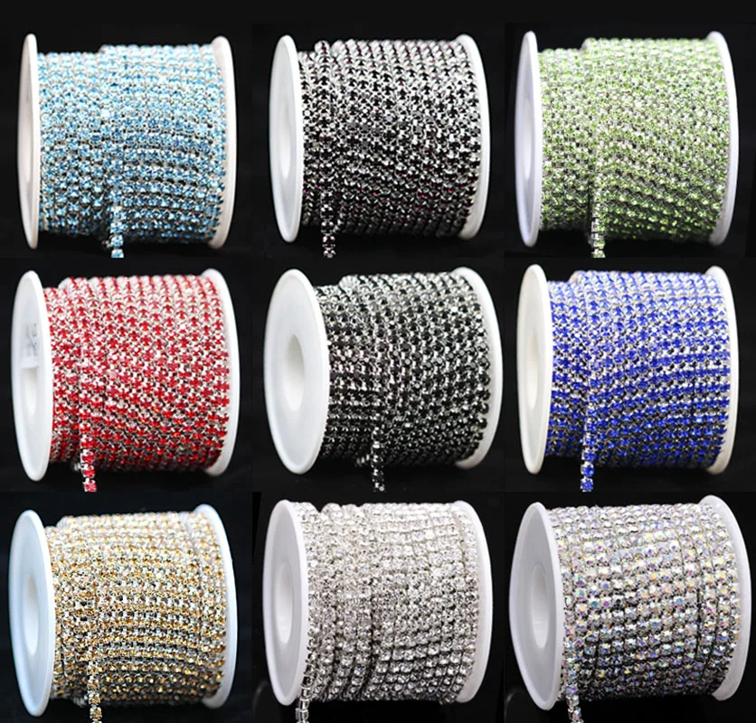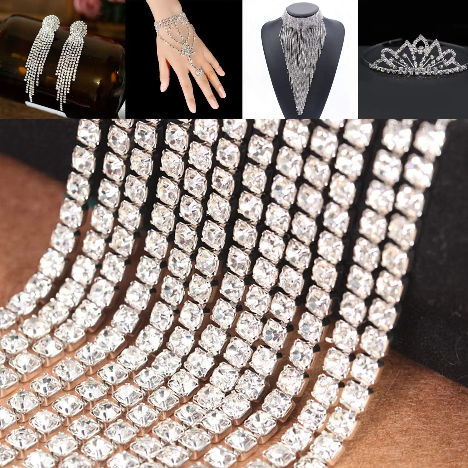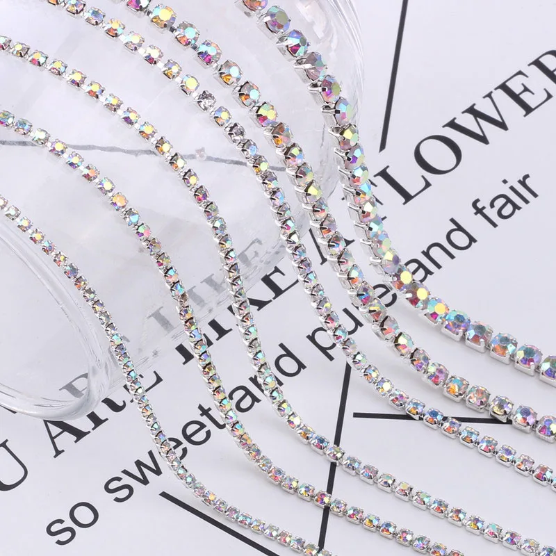 Цепочка для шитья с кристаллами, стразы разных цветов, клей на серебряной основе, аксессуары для рукоделия, 1 ярд
