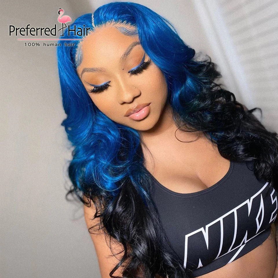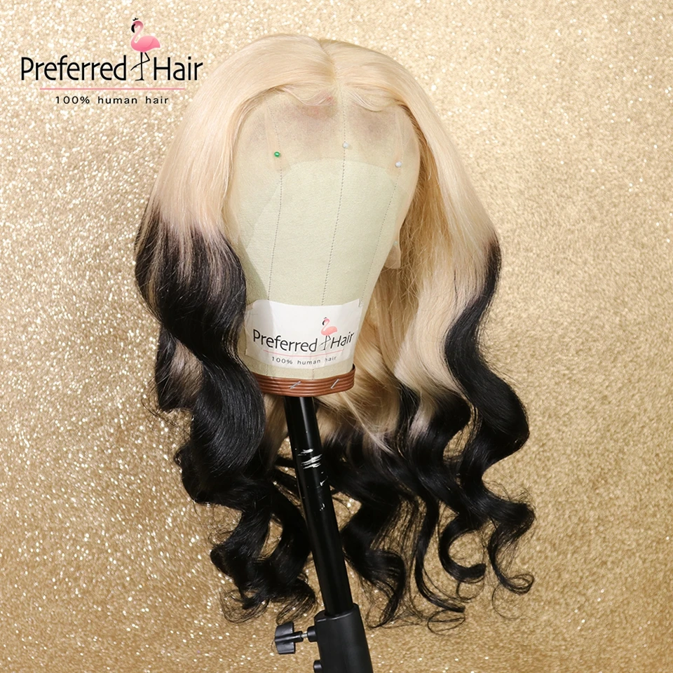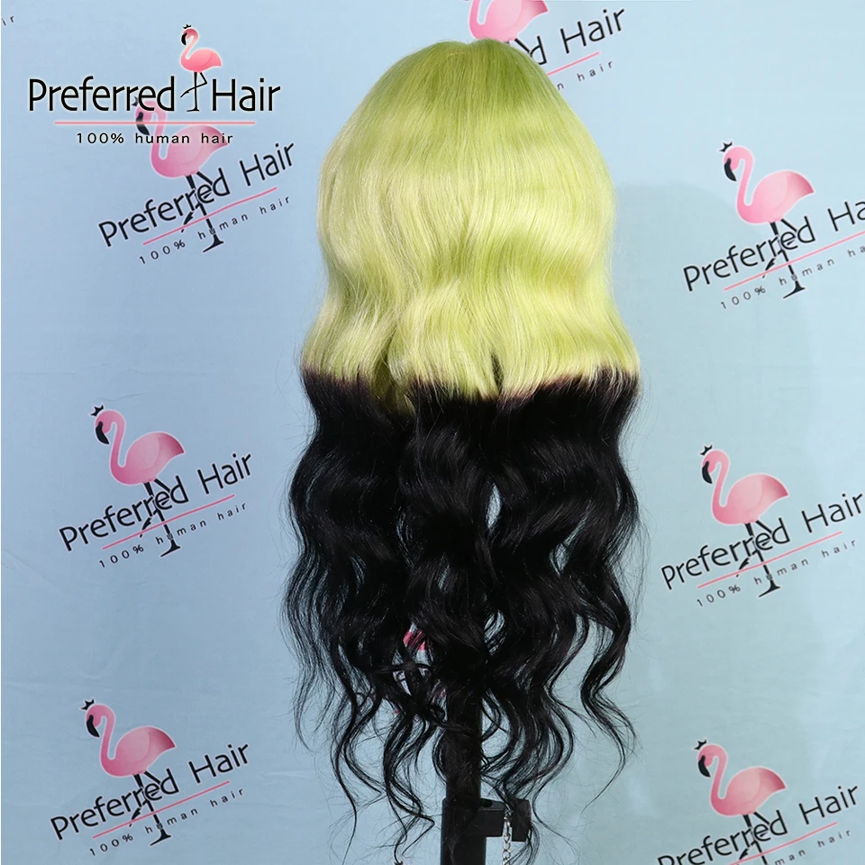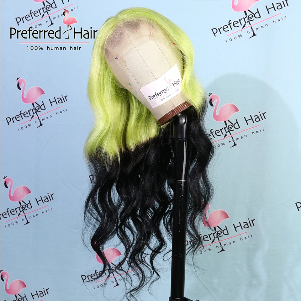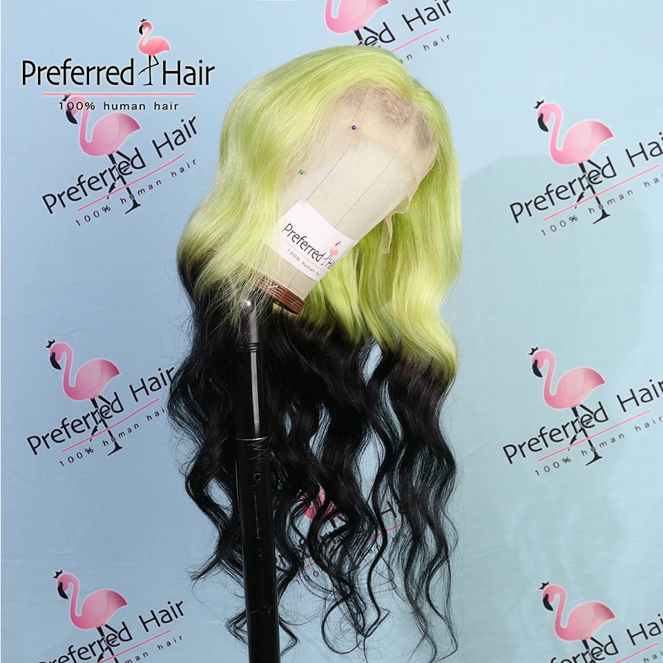 Предпочтительный парик из человеческих волос черного и светлого цвета с эффектом омбре, предварительно выщипанные зеленые 13x 4 парики на сетке спереди, бразильские парики без повреждений, прозрачные парики на сетке для женщин