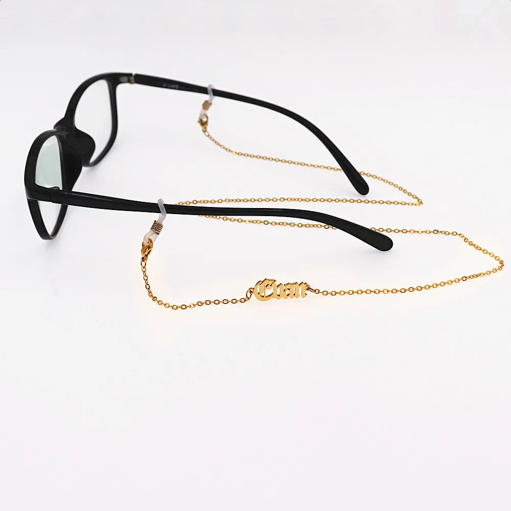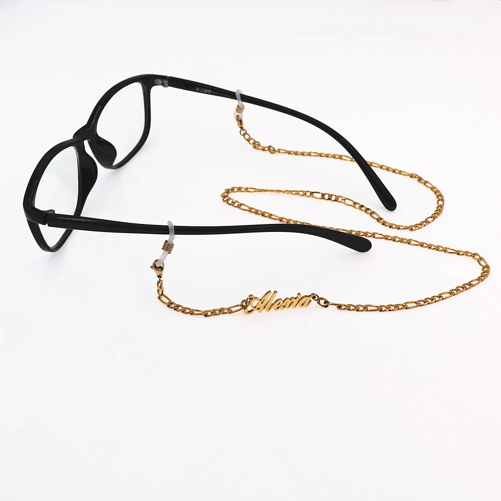 Золотая именная стеклянная цепочка, ожерелье из нержавеющей стали, именная цепочка для очков, держатель, солнцезащитные очки, рождественский подарок