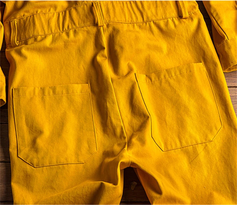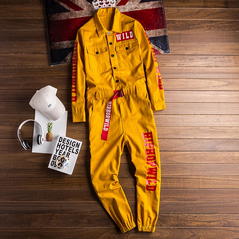 ShippingMen размера плюс комбинезон с японским и корейским алфавитом, с несколькими карманами, желтого цвета, Свободный комбинезон в стиле хип-хоп, новинка