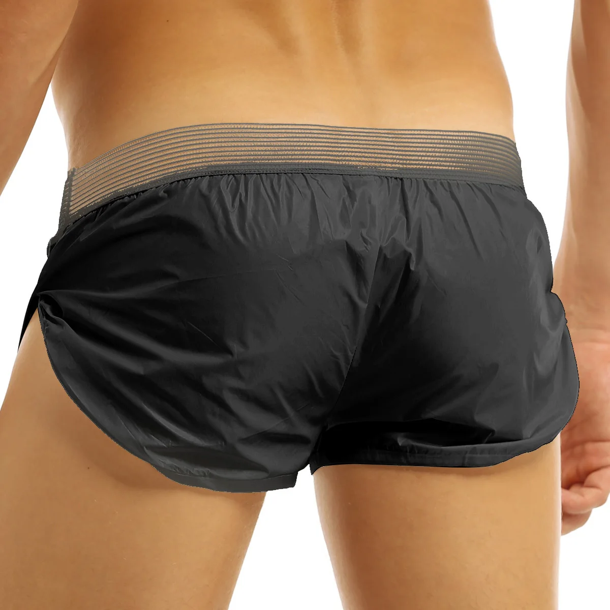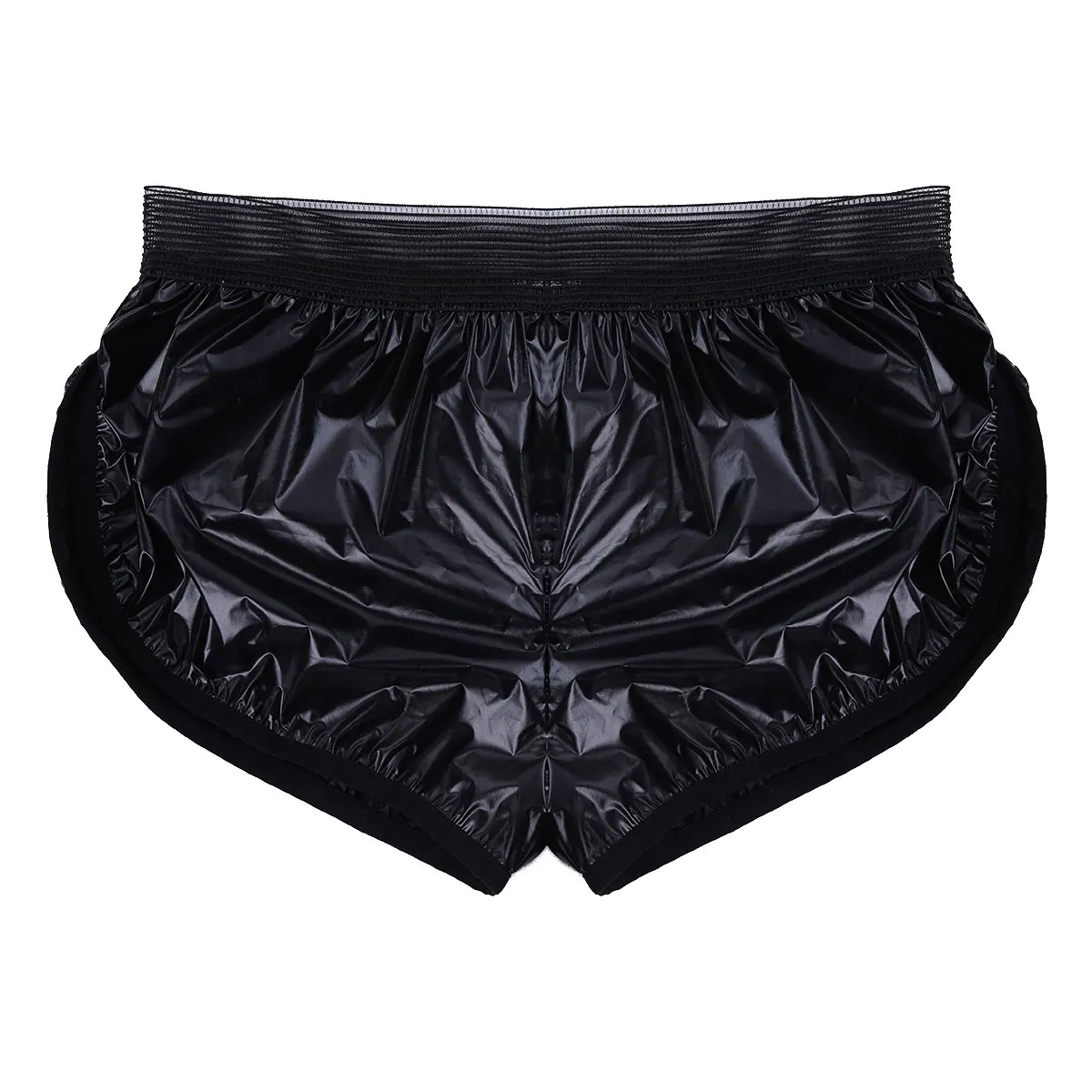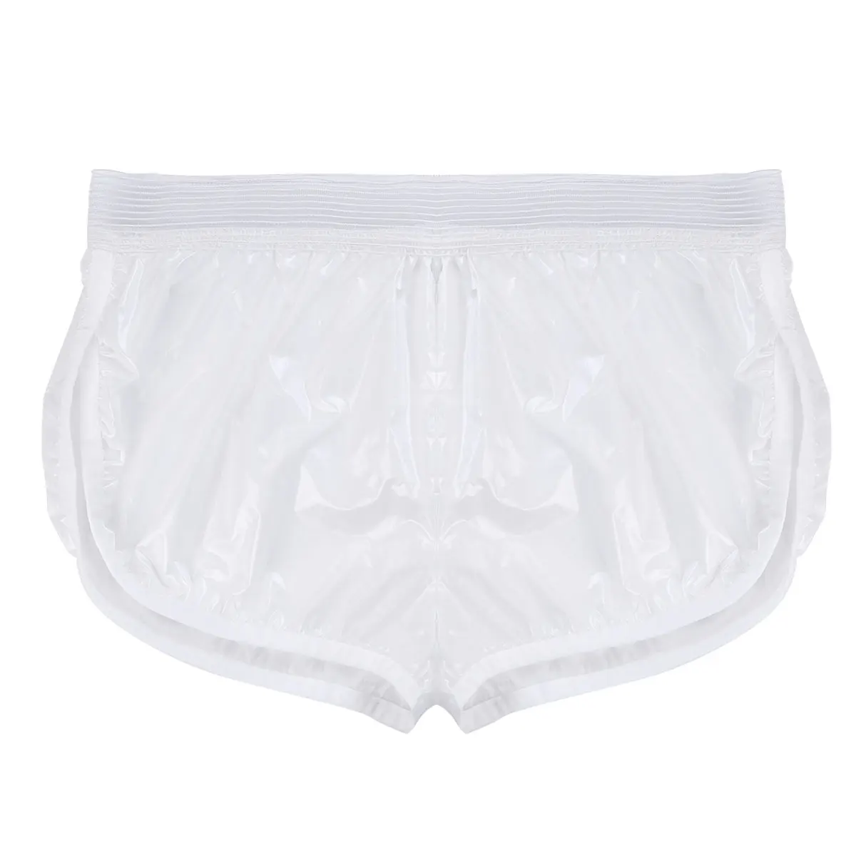 Мужские летние сексуальные шорты Wetlook, Искусственные кожаные боксёры, трусы с эластичным поясом, повседневные пляжные шорты Hombre