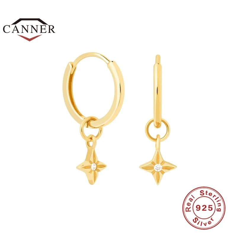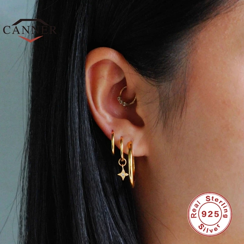 Женские серьги-кольца с цирконом CANNER, Настоящее серебро 925 пробы, модные серьги с пряжкой