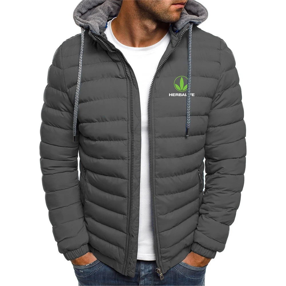 Мужские зимние парки, модное однотонное пальто с капюшоном из хлопк...