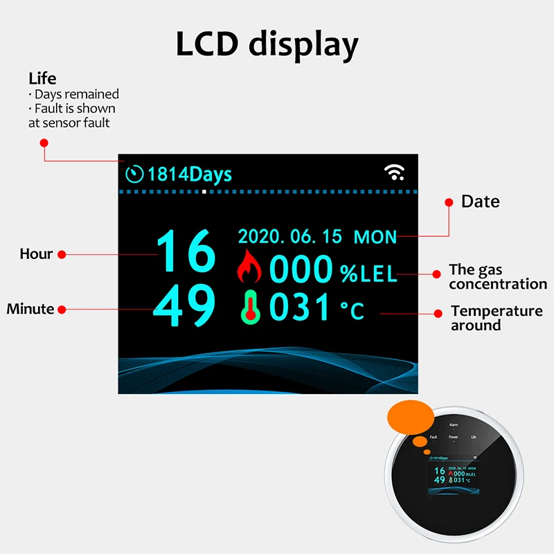 Детектор Утечки Газа Tuya, с ЖК-дисплеем, с поддержкой Wi-Fi
