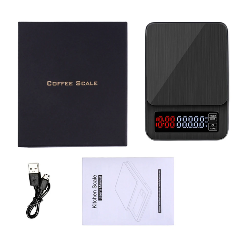 Кухонные весы с таймером, цифровые весы для кофе, многофункциональные электронные пищевые весы, весы для кофе 3 кг0,1 г 5 кг0.