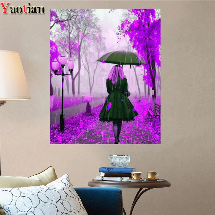 5D алмазная живопись, вышивка крестиком, Осенний пейзаж, девушка, фон, сделай сам, полное сверление, квадратная Алмазная вышивка, мозаика, рукоделие
