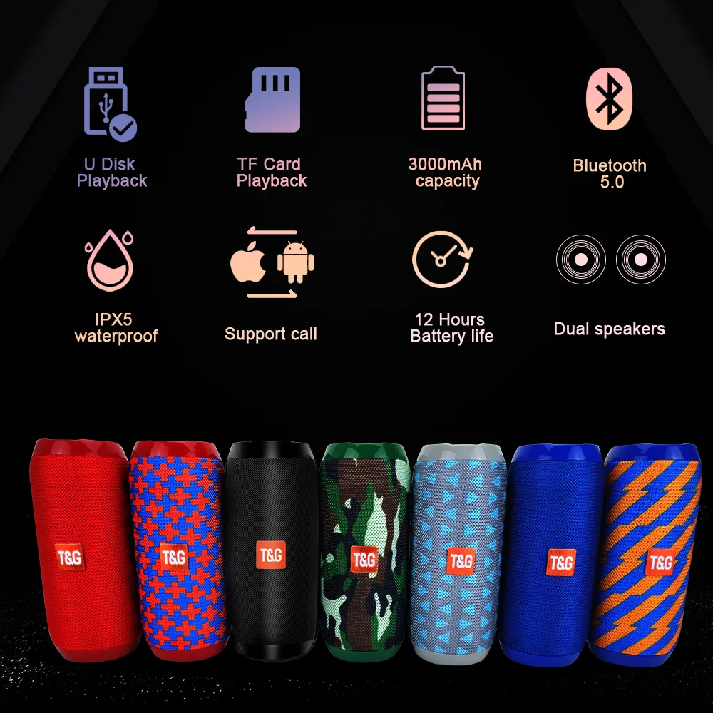 Портативный Hifi беспроводной динамик TG117, Водонепроницаемая USB-...