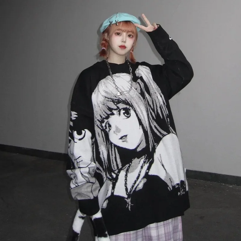 Свободная Толстовка в стиле аниме Харадзюку для девушек, свитер оверсайз, женский свитер аниме y2k, винтажная одежда, худи в стиле каваи, панк, гранж, худи
