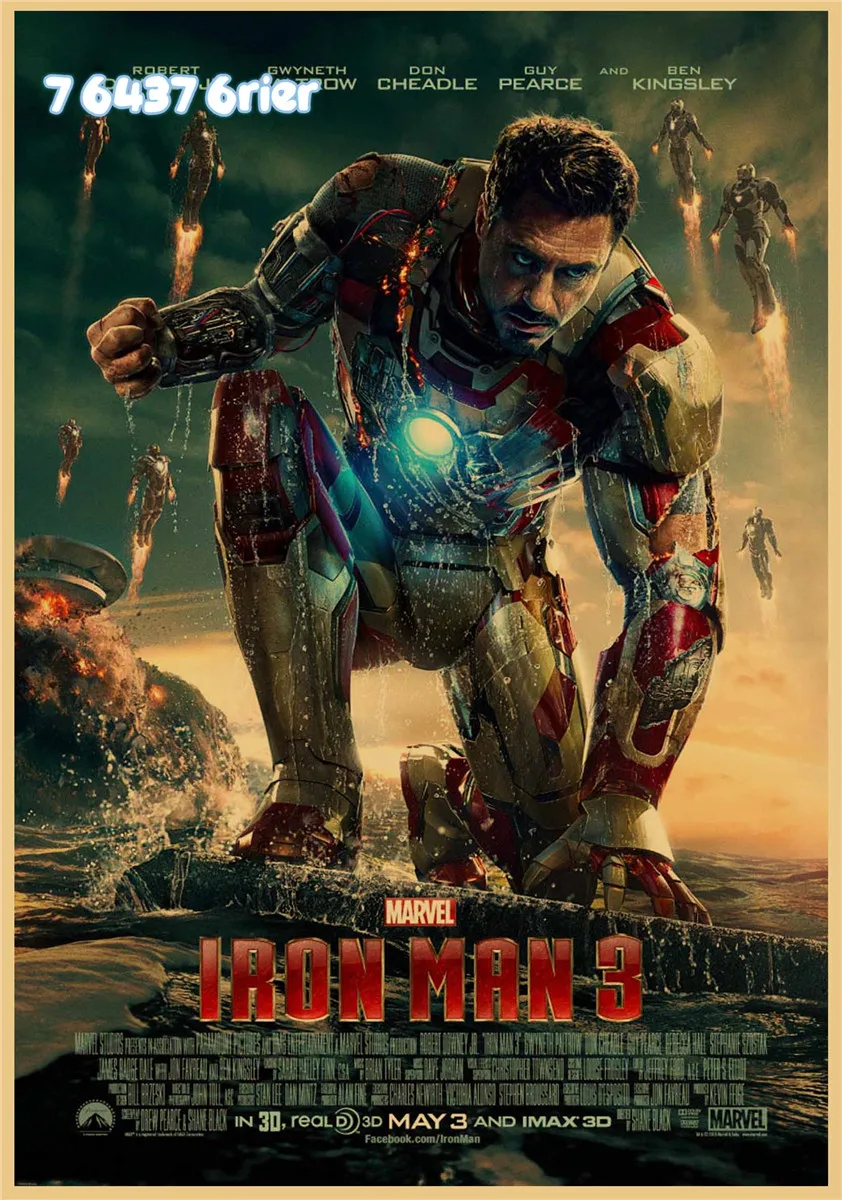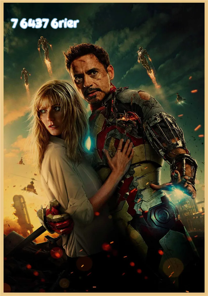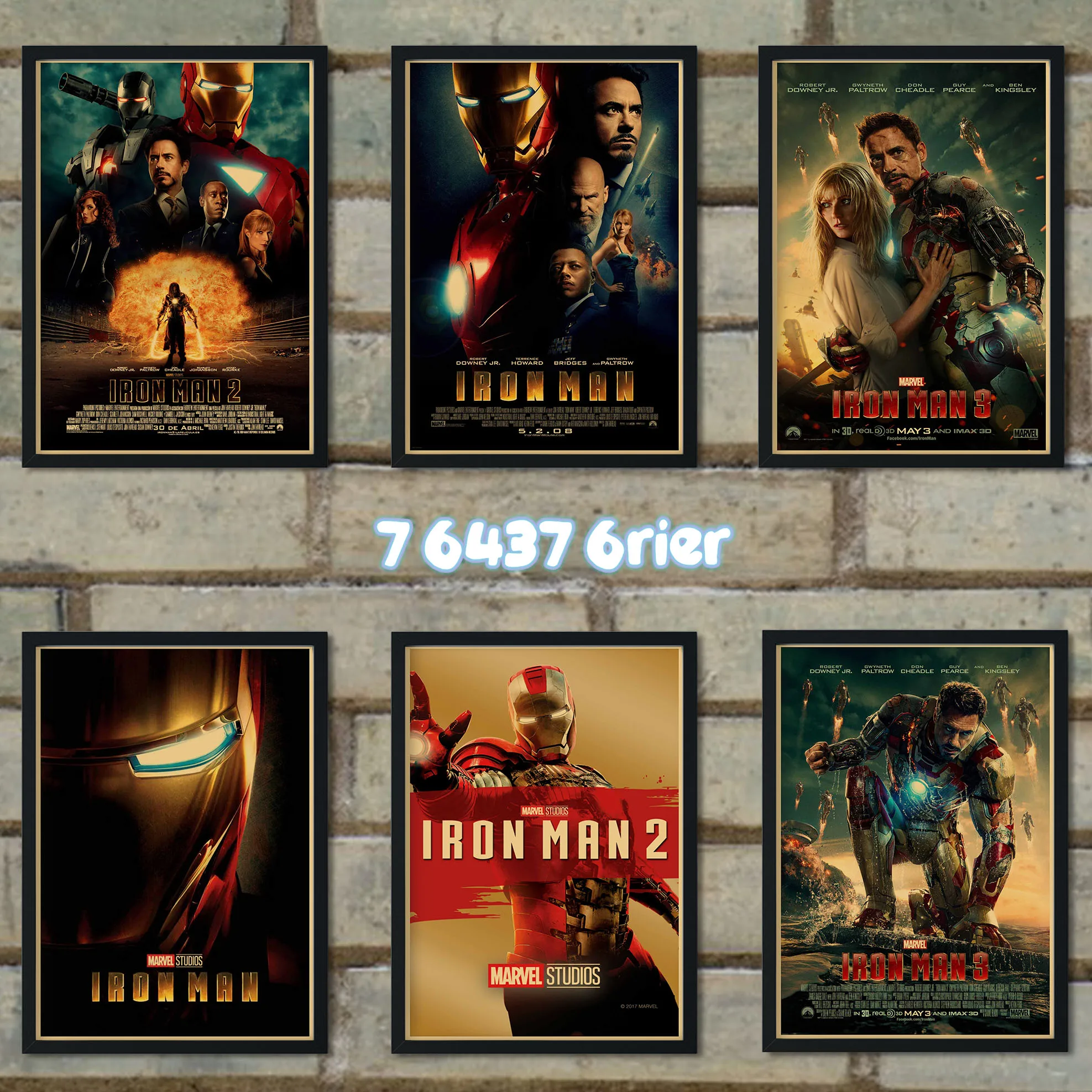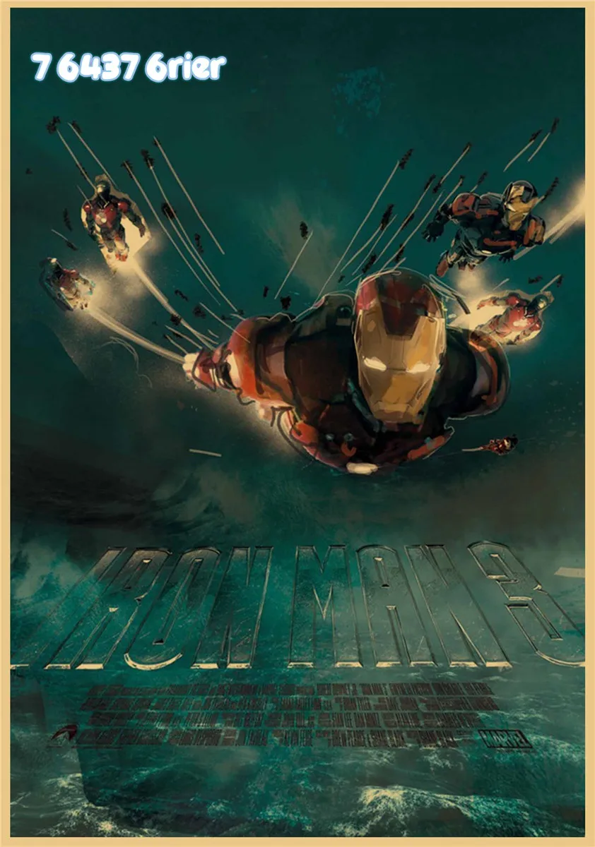 Супергерои Марвел Железный человек ретро фильм крафт-бумага плакат серия Мстители Бар Кафе семья настенный веер коллекция наклейка на стену A229