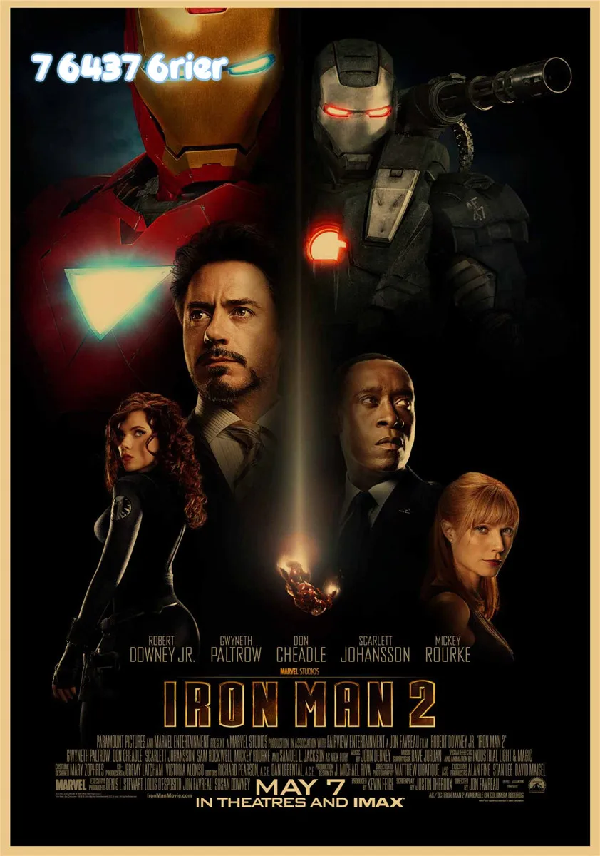 Постер из крафт-бумаги в стиле ретро с супергероями Marvel, Железны...