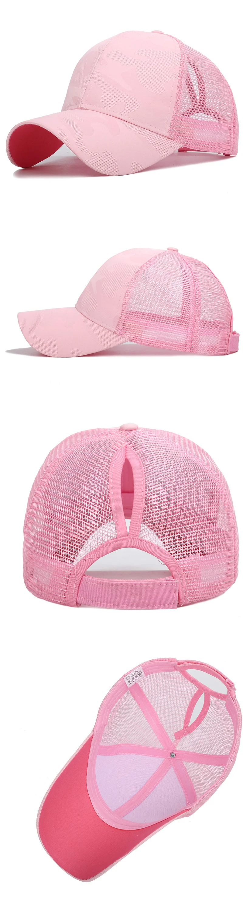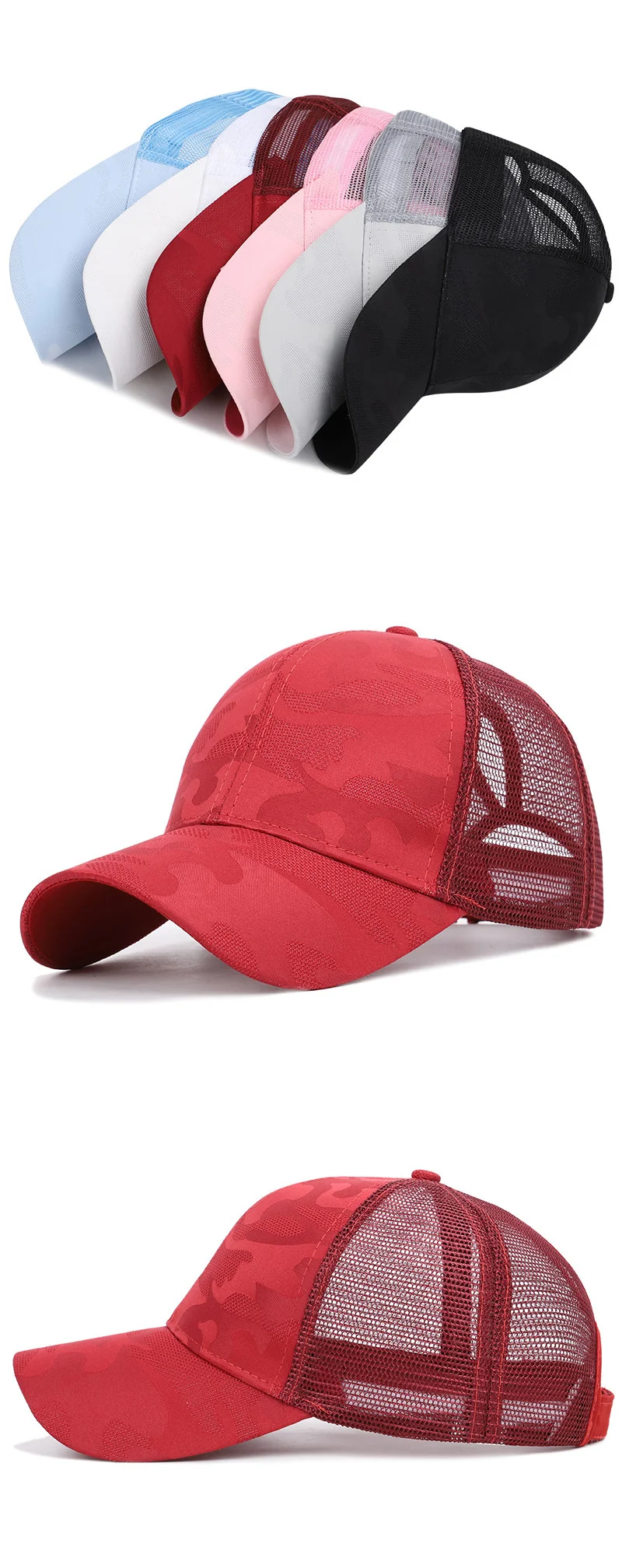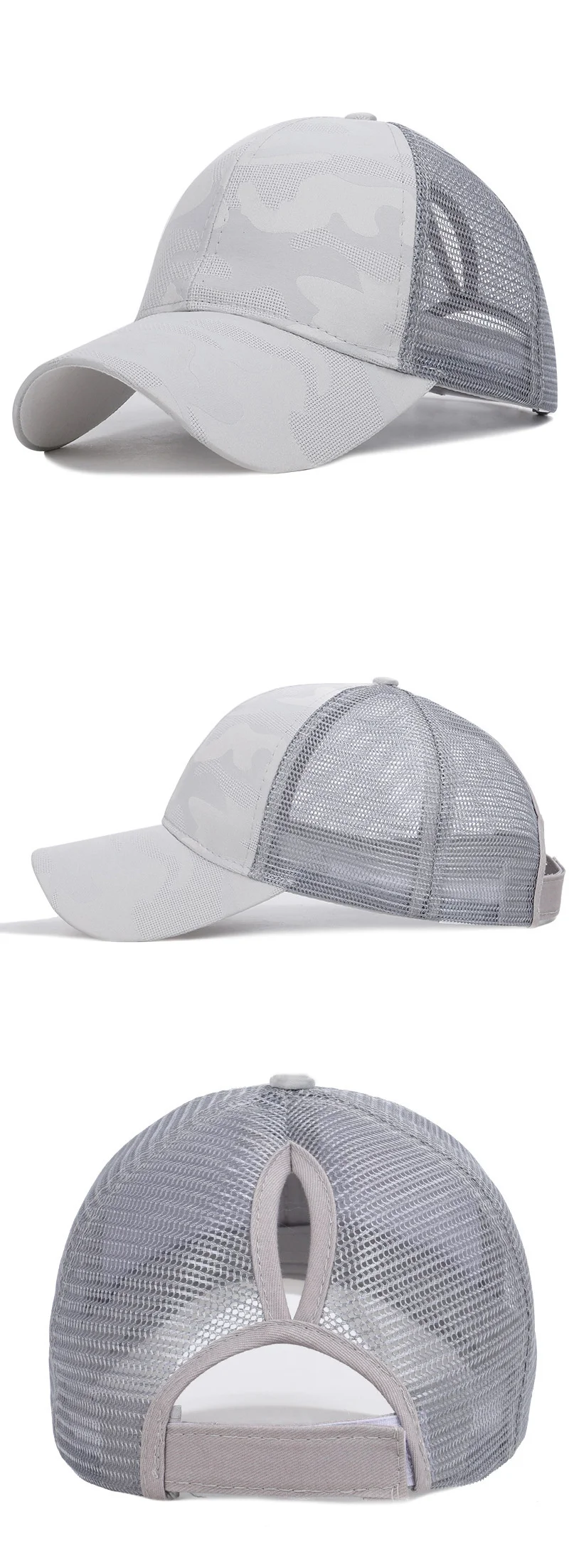 Бейсболка для конского хвоста для женщин Регулируемая винтажная Кепка-тракер из потертой ткани с высокой сеткой в пучок