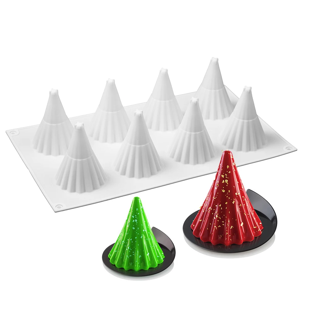 Новая форма в форме рождественской елки с 8 ячейками, силиконовый инструмент для украшения, 3D зонт, мусс, кондитерские изделия, домашняя выпечка