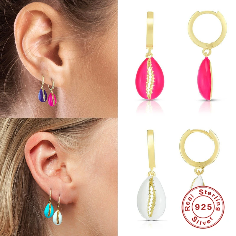 Aide 925 стерлингового серебра в виде ракушки Шарм капель масла обруч серьги Huggie пирсинг Милые Роскошные женские 2021 модные ювелирные изделия