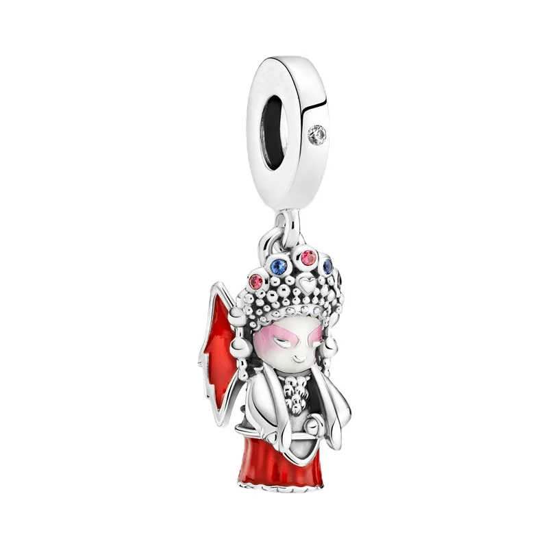 Бусины для браслета Pandora, серебристые и синие Бусины в форме Ловца снов, Пекинской оперы, 925 пробы