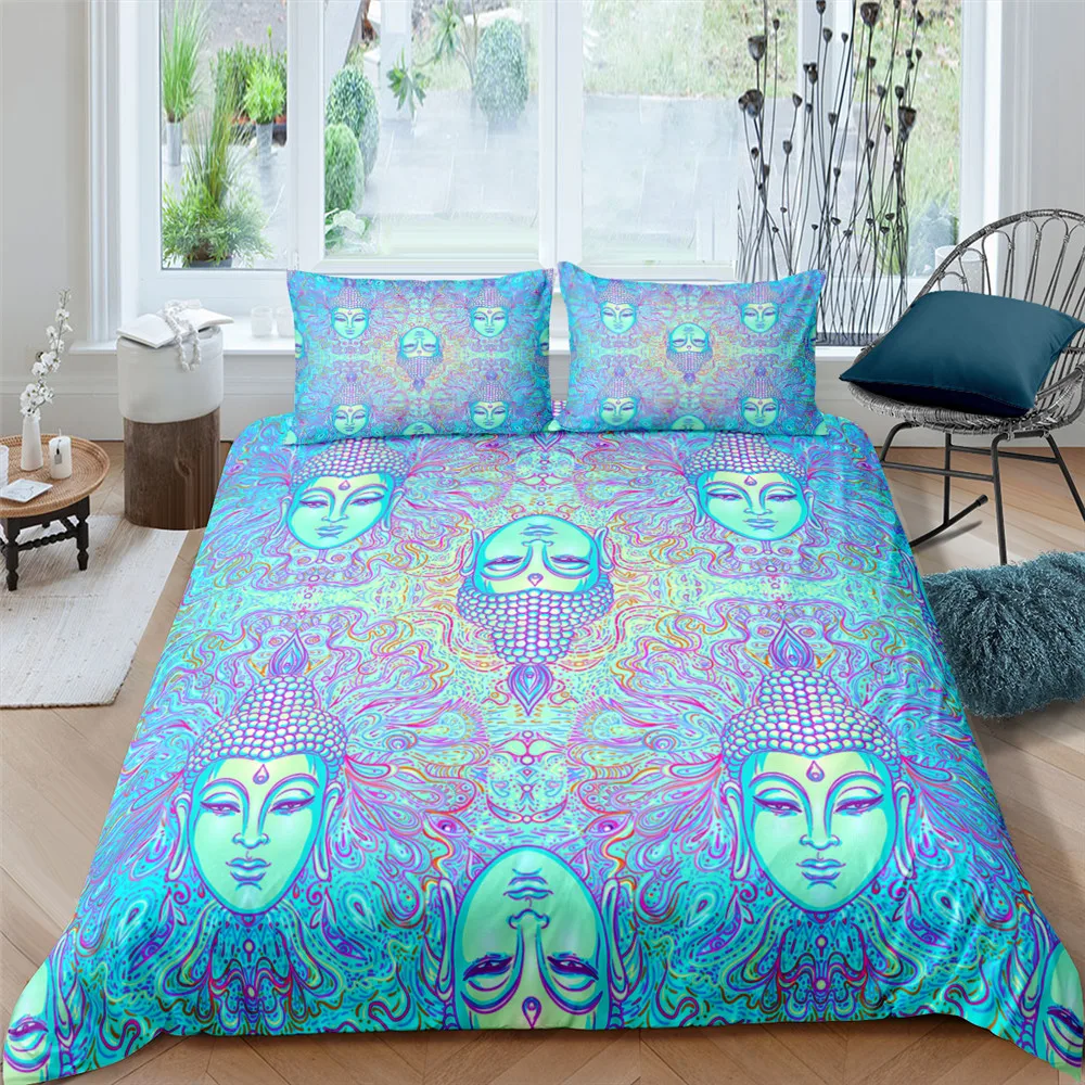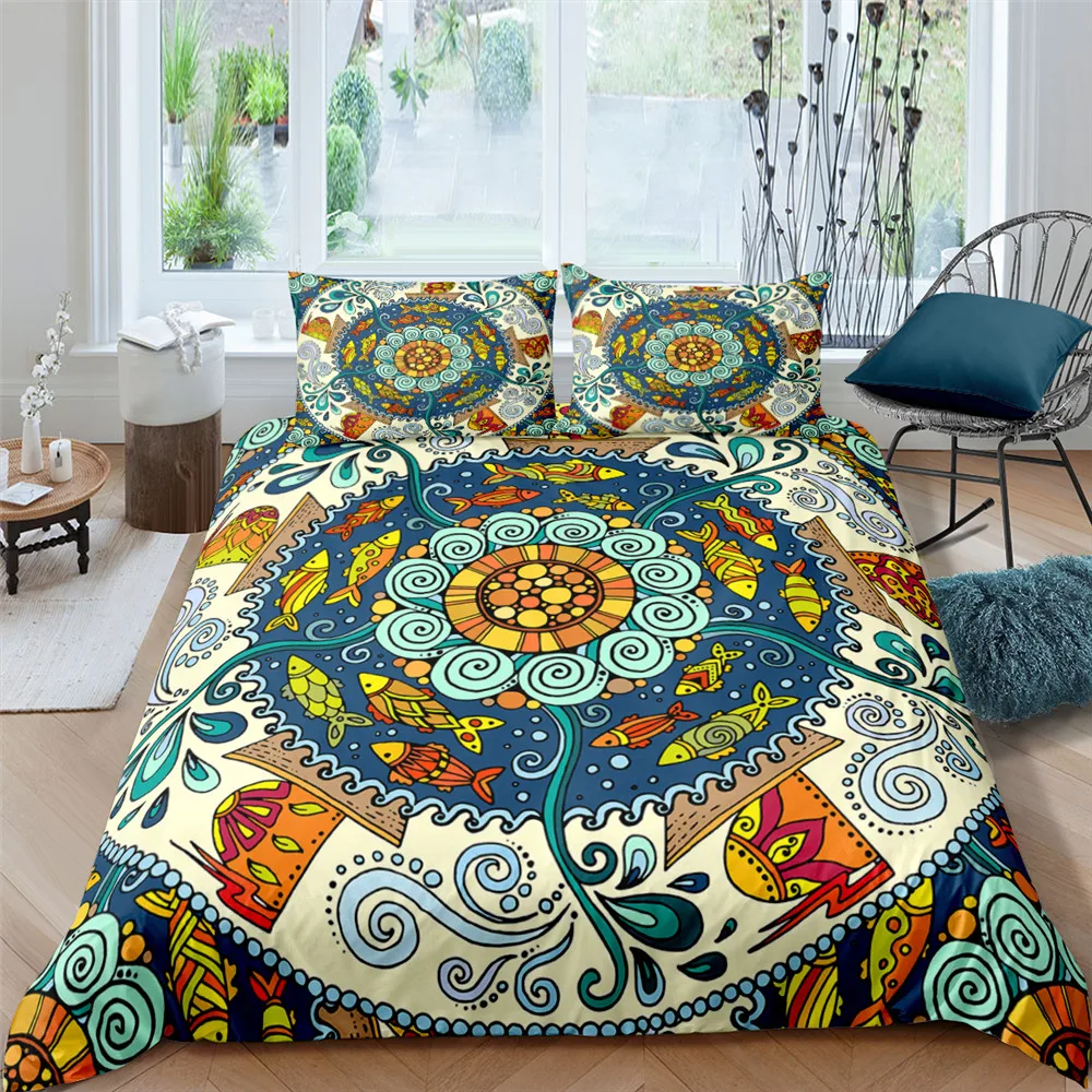Комплект постельного белья Буддамандала, двойной богемный пододеяльник, этническое постельное белье с цветами, с цветочным принтом, для двуспальной кровати, с наволочкой