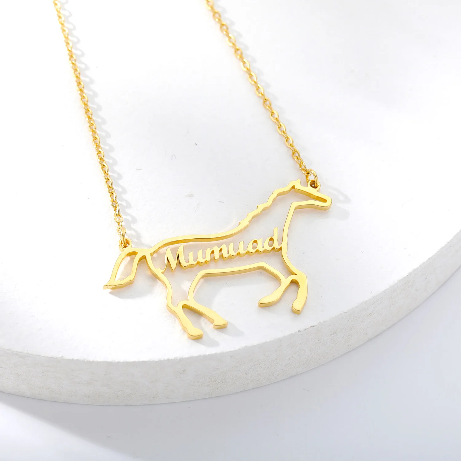 Индивидуальные ювелирные изделия, персонализированное ожерелье с именем лошади для женщин, ювелирные изделия ручной работы с животными, Золотая табличка, чокер, ожерелье, мужская бижутерия