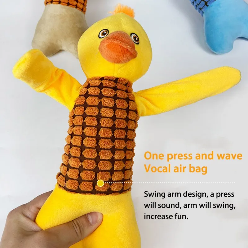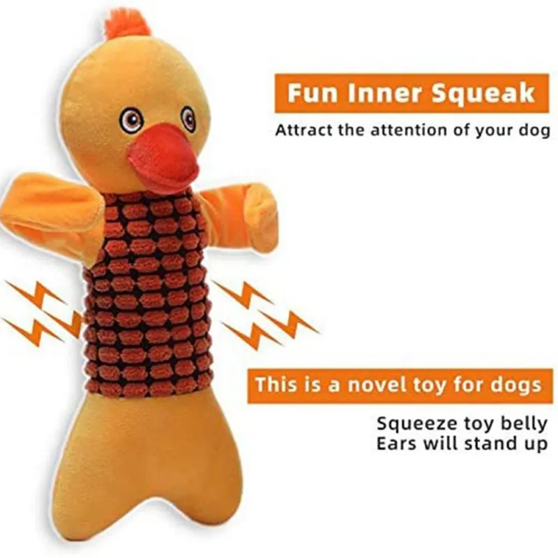 【Уникальный дизайн 】 это уникальная интерактивная игрушка для собак. Наша игрушка для жевания не только визжит! Когда вы нажимаете на живот, уши щенка привлекут внимание собаки, и утка откроет руку, чтобы обнять вашу собаку. Это лучшая интерактивная игрушка для игры с собакой.【Безопасный натуральный материал 】: плюшевые игрушки для собак изготовлены из нетоксичного натурального материала и мягкой плюшевой поверхности, высококачественный материал s безопасен для жевания и игры вашего питомца. Вышивка и прочное шитье делают игрушку более прочной и устойчивой к укусам.【Interactive & IQ Treat training】интерактивные игры помогают уменьшить разрушительное поведение. Избавьтесь от депрессии, скуки и беспокойства, когда они одни. Плюшевые игрушки хороши для игр, которые помогают высвобождать чрезмерную энергию. Не рекомендуется для собак с агрессивным жеванием.【Пищащая игрушка для собаки 】 пищащие игрушки для собак создадут громкий четкий звук при укусе домашних животных. Он может привлечь собак для жевания для уменьшения скуки. Эффективно развивает и поддерживает физическую бдительность собаки.【Чистка зубов и сохранение здоровья 】наши игрушки для собак сделаны из короткого нетоксичного плюша и толстого вельвета, который достаточно мягкий, чтобы защитить рот Вашего щенка. Помогает чистить зубы и массировать десны и уменьшает разрушительное поведение. Материал: плюш + хлопокРазмер: A/B/C 28 см, C/D/E: 22 смВозможна погрешность в 1-3 см из-за ручного измерения. Посылка включает:1 шт. игрушка для домашних животных