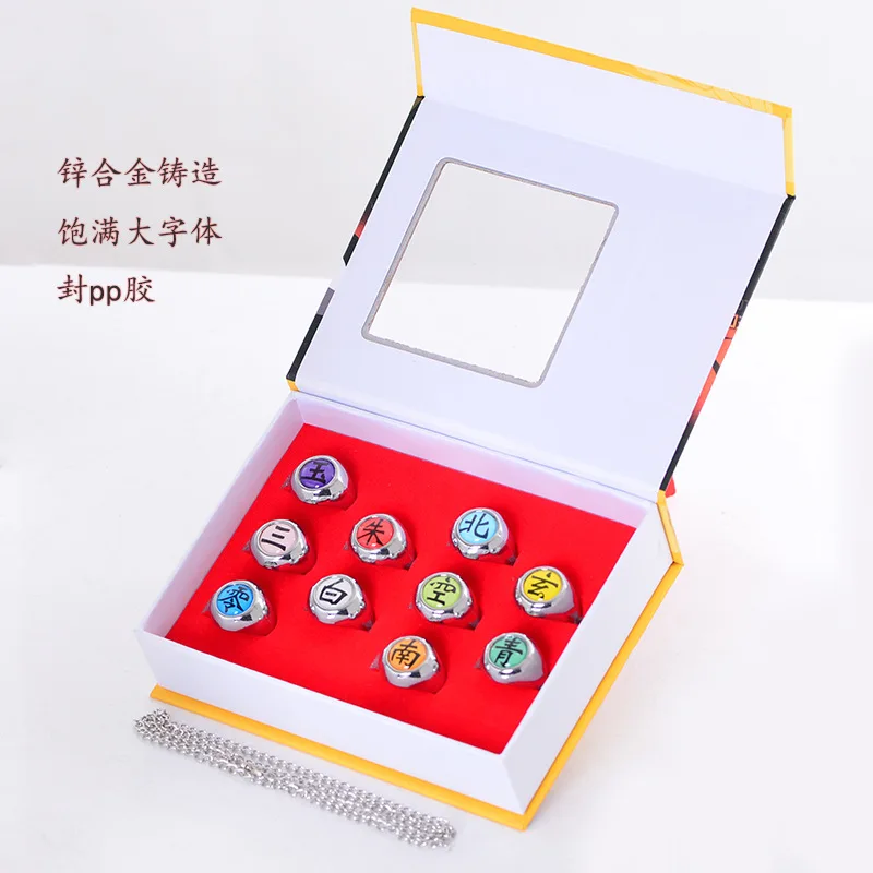 10 шт.компл. мультфильм Akatsuki Shippuuden ювелирные изделия косплей костюм кольца ниндзя модный стол Akatsuki металлическое кольцо набор аксессуаров