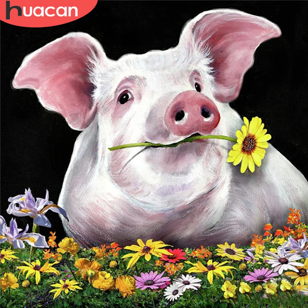 Алмазная живопись свинья HUACAN, квадратная набор со стразами Алмазная вышивка, животные, мозаика, вышивка крестиком, подарок ручной работы