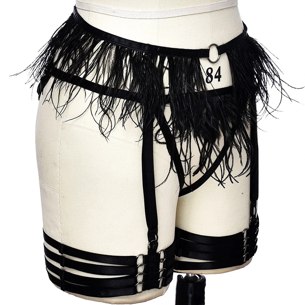 Портупея JLX.HARNESS бюстгальтер с перьями, ажурная портупея для те...