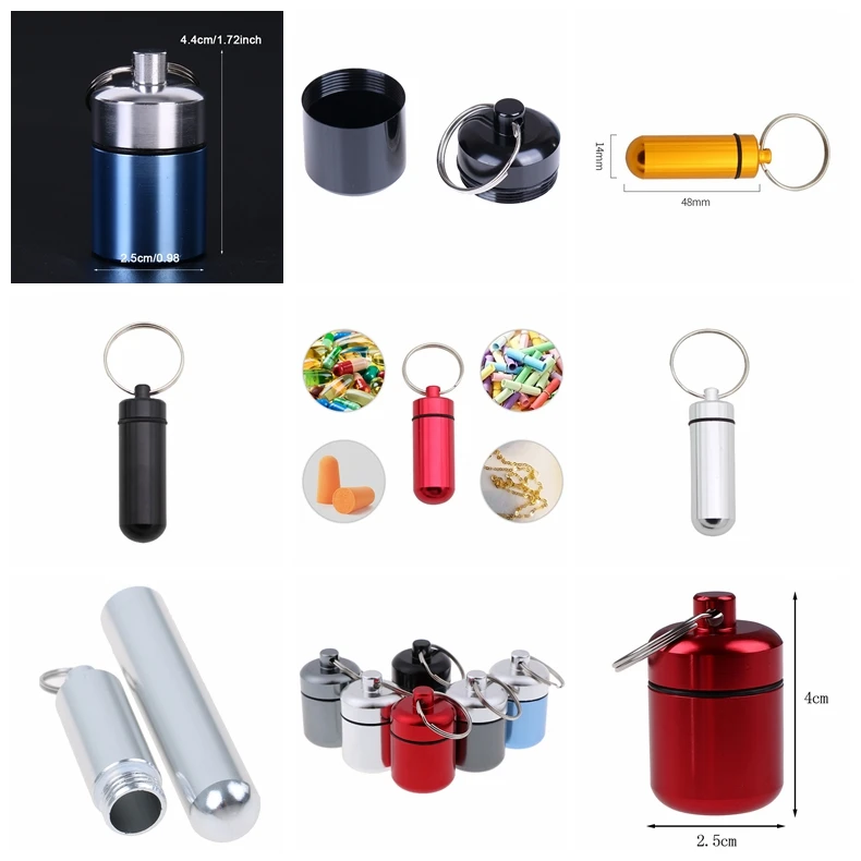 Миниатюрный портативный алюминиевый чехол для таблеток, переносной футляр для затычек для ушей, контейнер для ключей, водонепроницаемый уличный контейнер для лекарств, чехол-держатель для бутылки