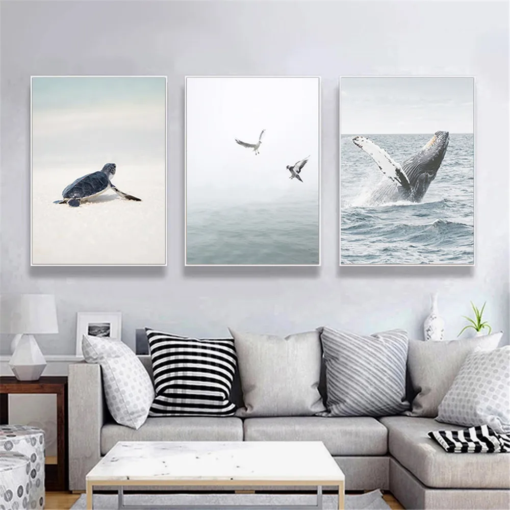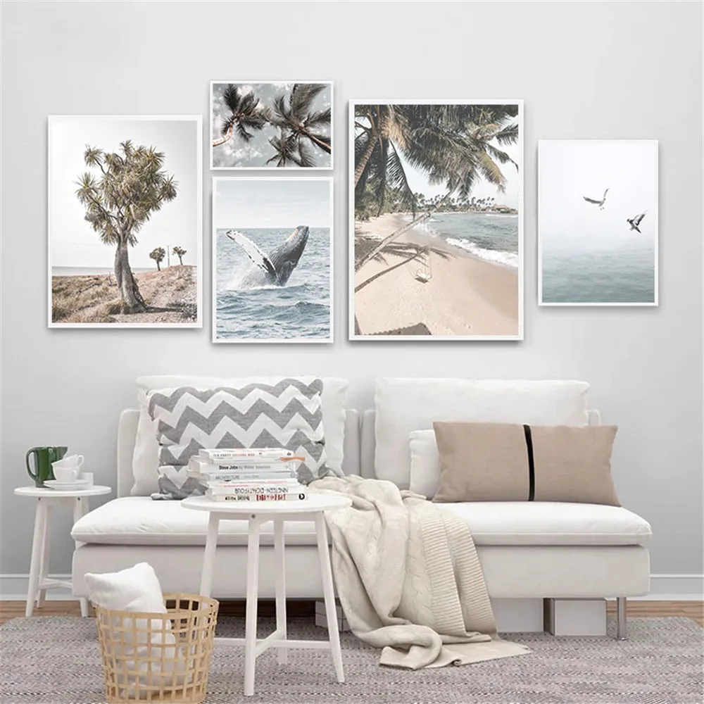 Постер в скандинавском стиле с изображением морских КИТ и птиц, Пляжное кокосовое дерево, холщовая картина, женские постеры для серфинга, пейзаж, настенное искусство, картины, домашний декор