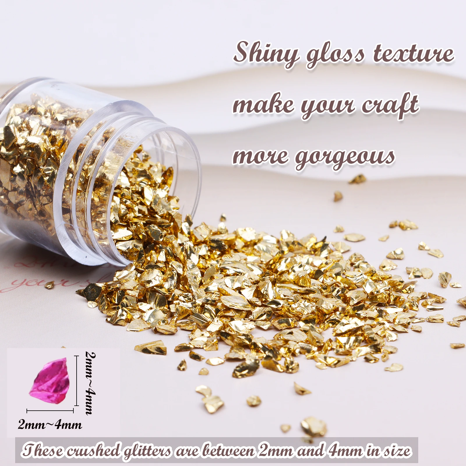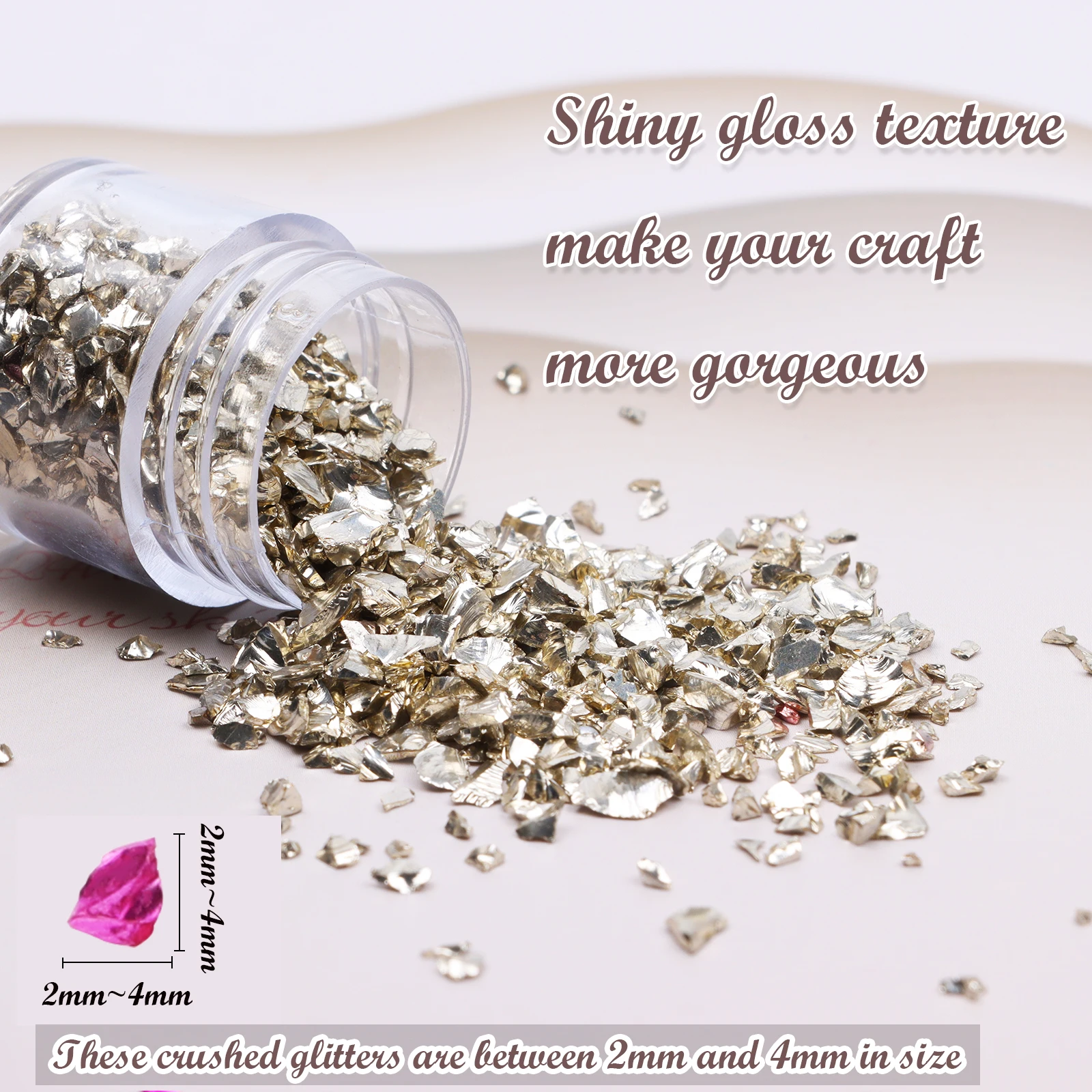 · Блестящая и безопасная: высококачественная металлическая окраска, выглядит блестящим на внешнем виде под светильник, не выцветает и не окисляется. Блестящая блестящая текстура сделает ваш продукт более великолепным. Все Блестки из измельченного стекла обработаны тупым краем, без острых краев, безопасны в использовании.