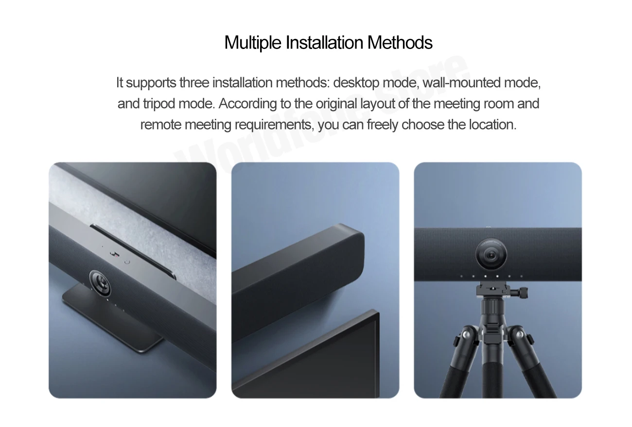 Поддерживает три способа установки: настольный режим, настенный режим и режим штатива. В соответствии с оригинальным макетом конференц-зала и удаленными требованиями к встрече, вы можете свободно выбрать место.