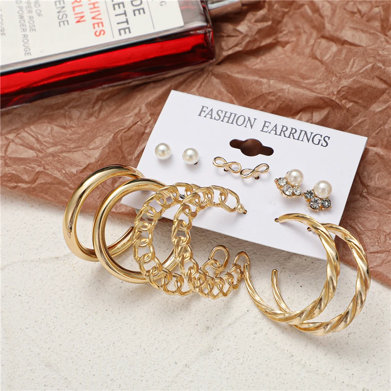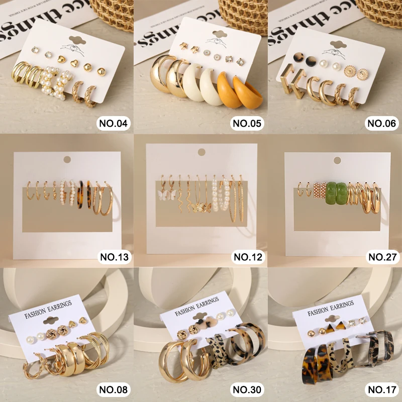 Набор акриловых золотых металлических серег для женщин, серьги с-об...