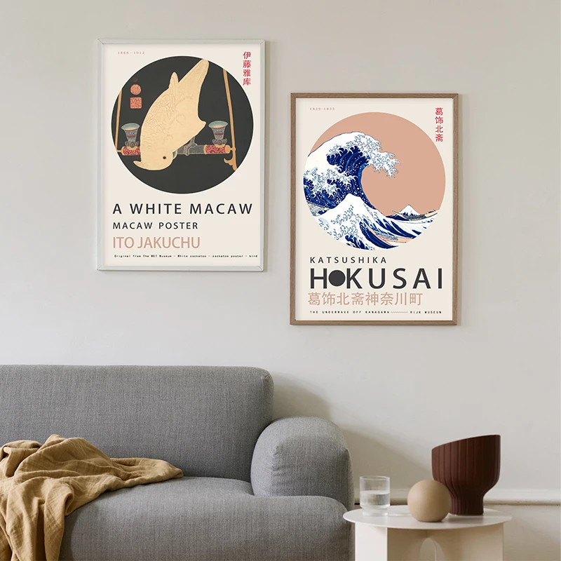 Винтажный Японский выставочный плакат Hokusai Ito Jakuchu Macaw Art Print Gallery Настенная картина на холсте для домашнего декора комнаты