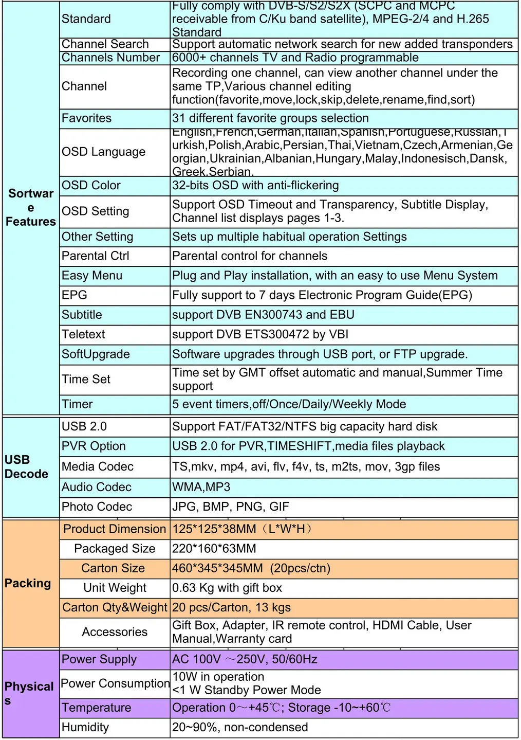 Support 2Built-in WIFI 2.4G BISS auto roll, Full PowerVu, DRE &Biss key, Ethernet