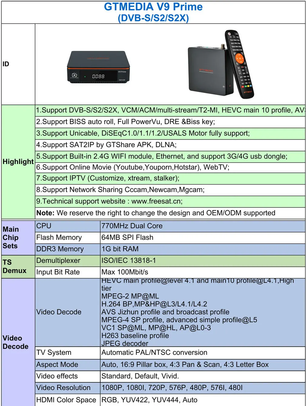 GTmedia V9 Prime телеприставка спутниковый ресивер Встроенный 2,4G ...