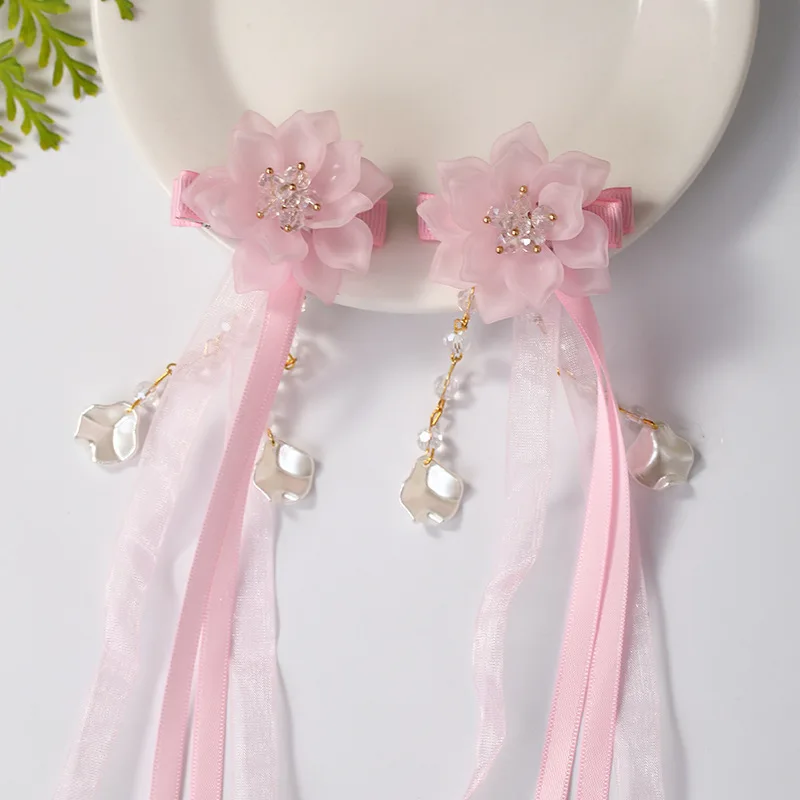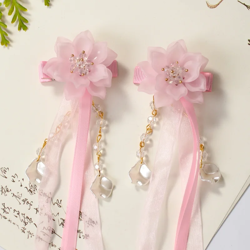 Древняя китайская Стиль костюм волос аксессуары-кисточки шпилька для лент розовый цветок ручной работы в стиле ханьфу, в стиле ретро, украшенные мехом MAEA99