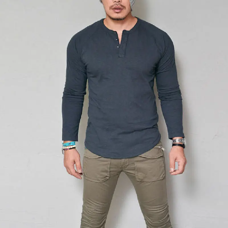 Футболка мужская Хенли с длинным рукавом, застежка на пуговицах, По...