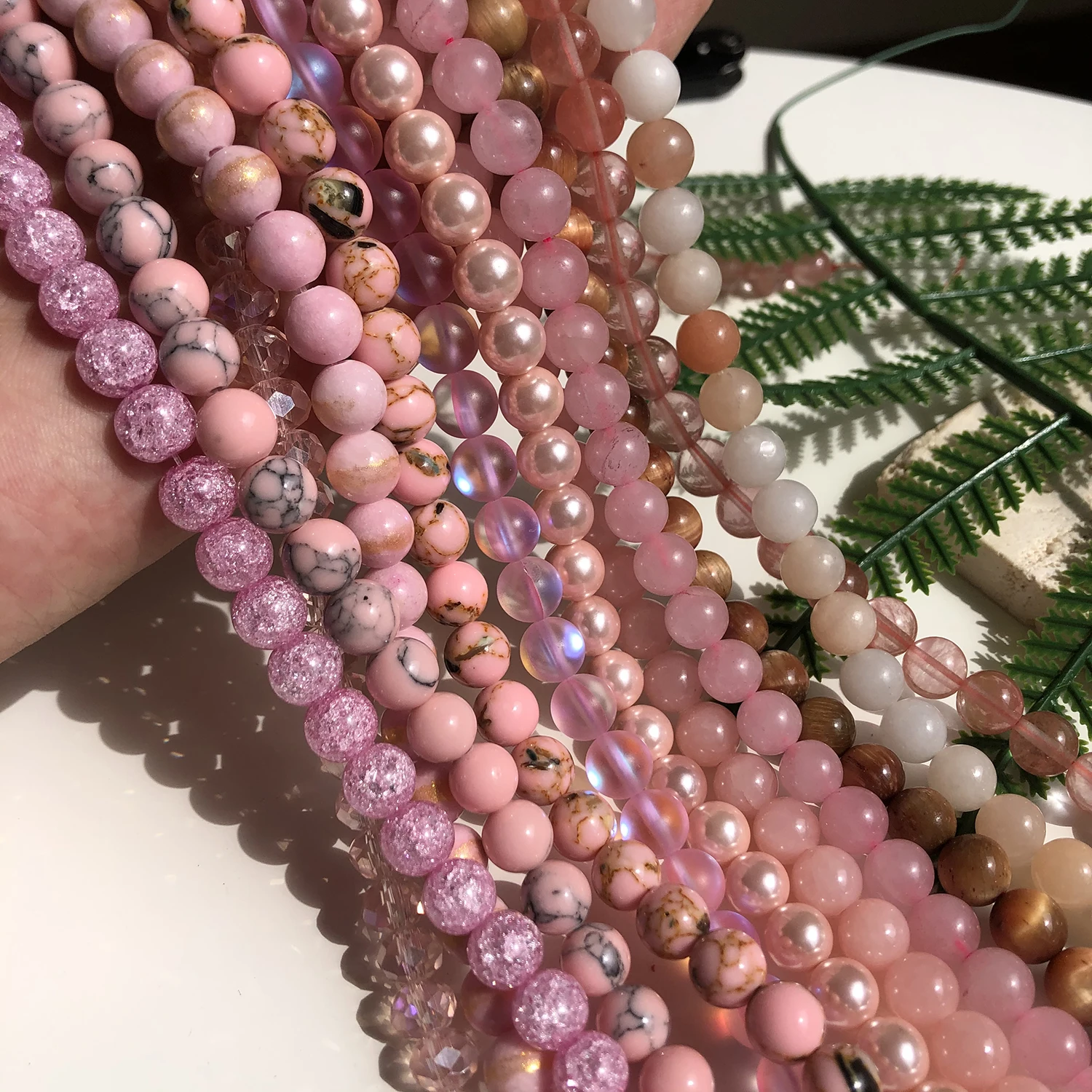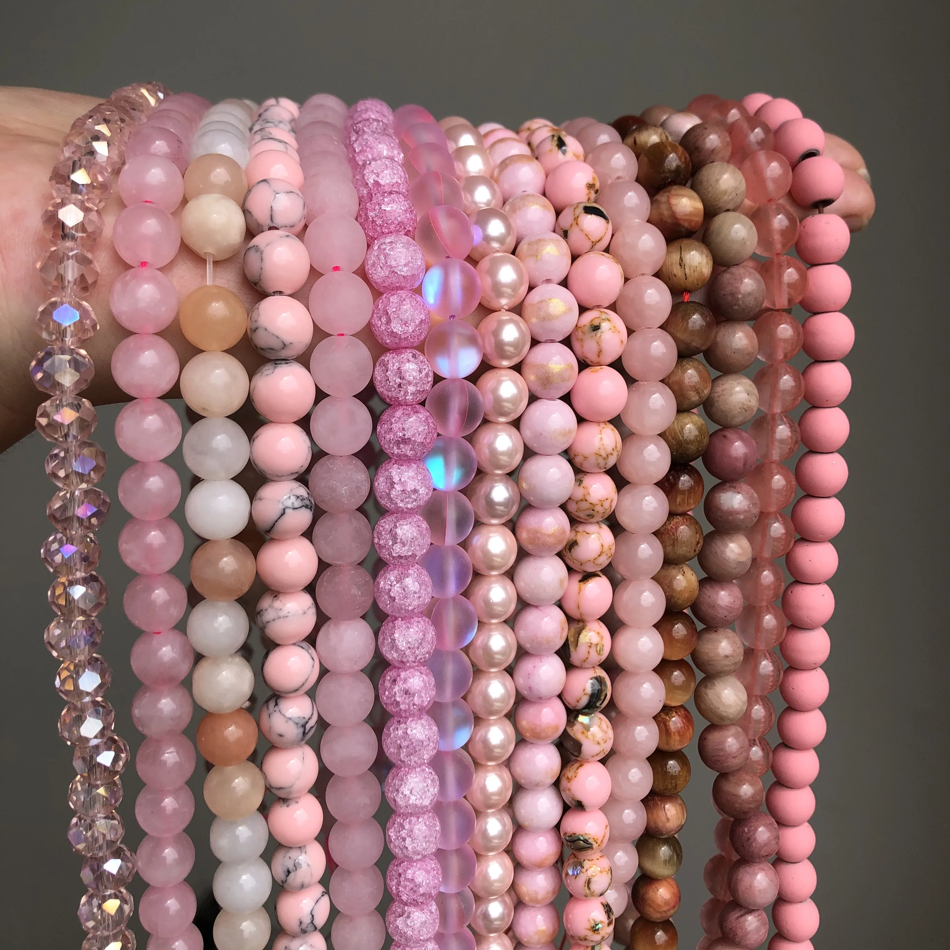 4-12 мм натуральные драгоценные камни розовый серии лавовый камень браслет с украшением в виде кристаллов Агаты Ясперс бирюзой кварцевые круглые бусины для самостоятельного изготовления ювелирных изделий браслет