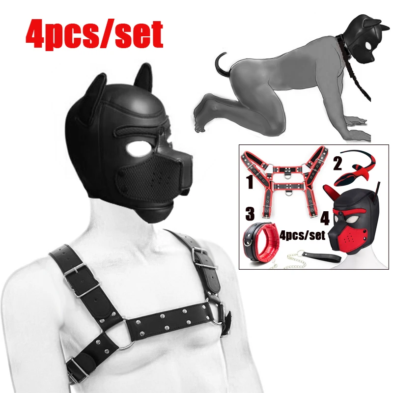Вечерние Маски для ролевых игр с капюшоном для щенков и собак, кожаный мужской нагрудный ремень, поводок с воротником на шее, Анальная пробка для щенков SM, секс-игрушки