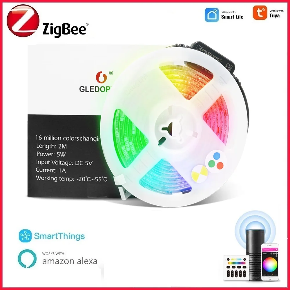 Светодиодная лента ZigBee Smart TV, миниатюрный светильник с питанием от USB, лампа RGBCCT Smart Life, работает с приложением Tuya и пультом дистанционного управления, поддержка Alexa SmartThings