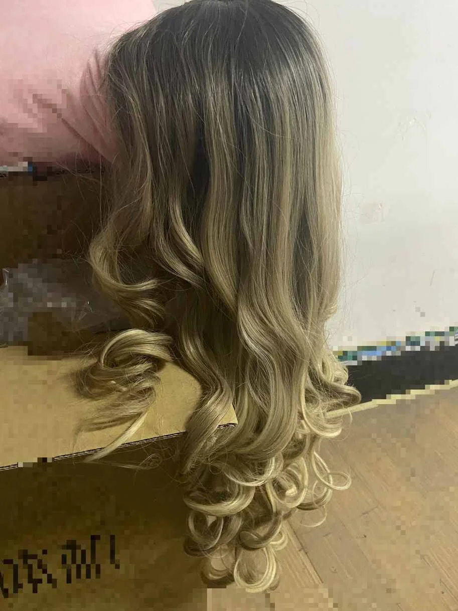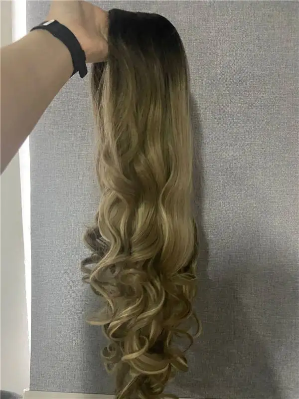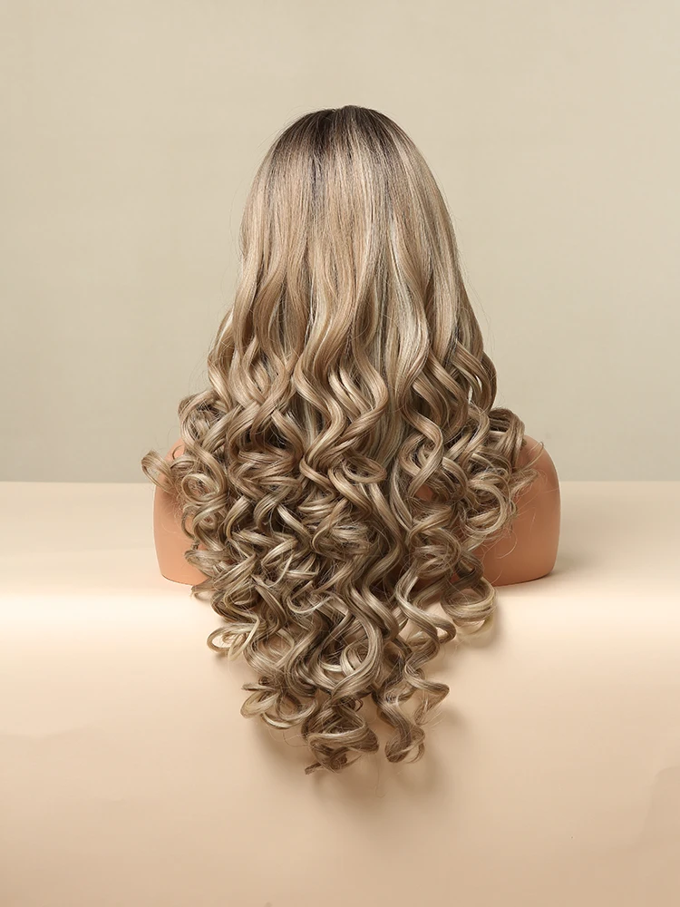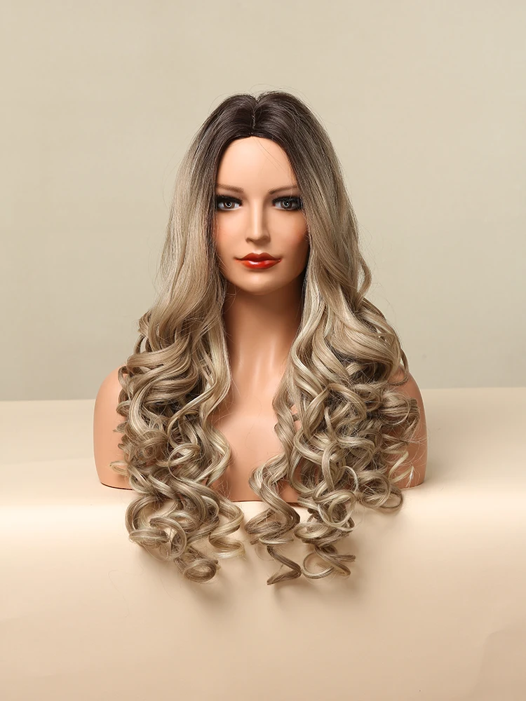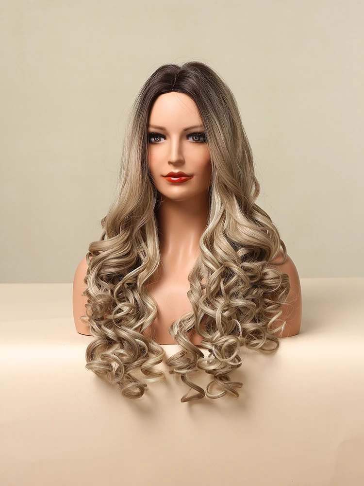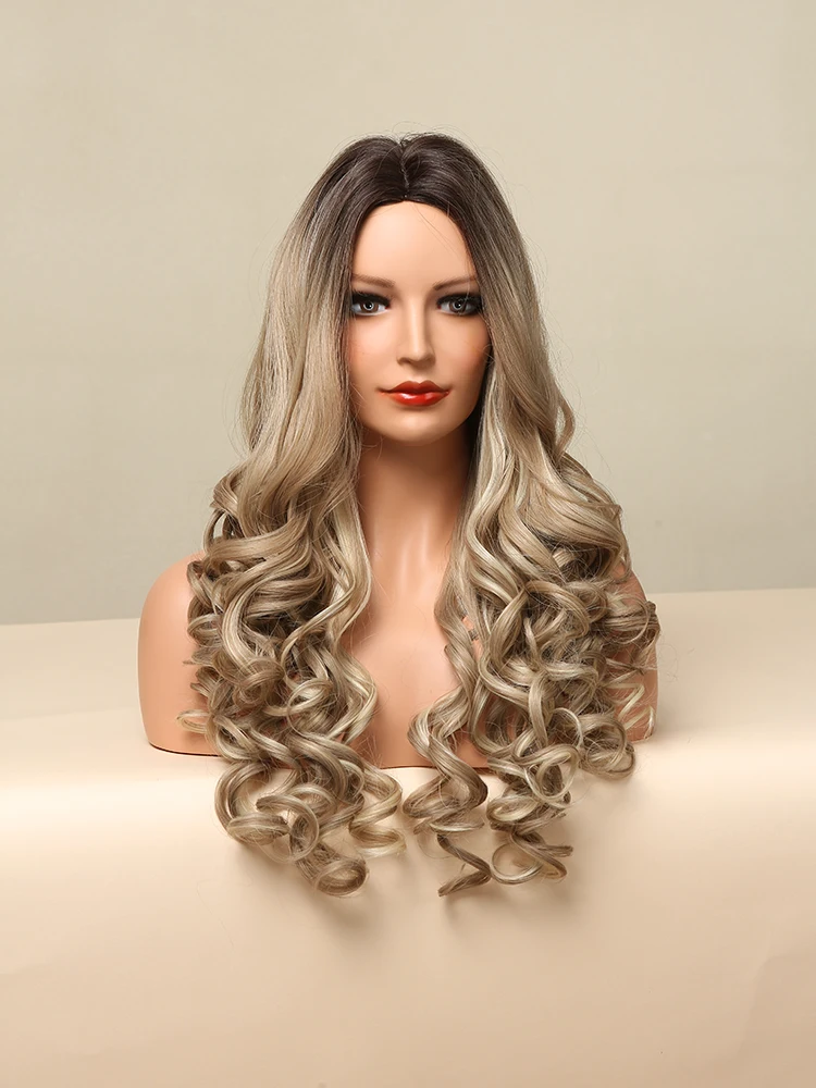 Длинные вьющиеся волнистые волосы LOUIS FERRE, светлые синтетические парики с эффектом омбре для чернокожих женщин, термостойкие натуральные парики для косплея с темными корнями
