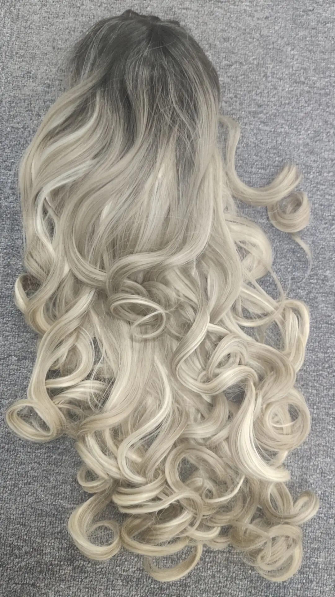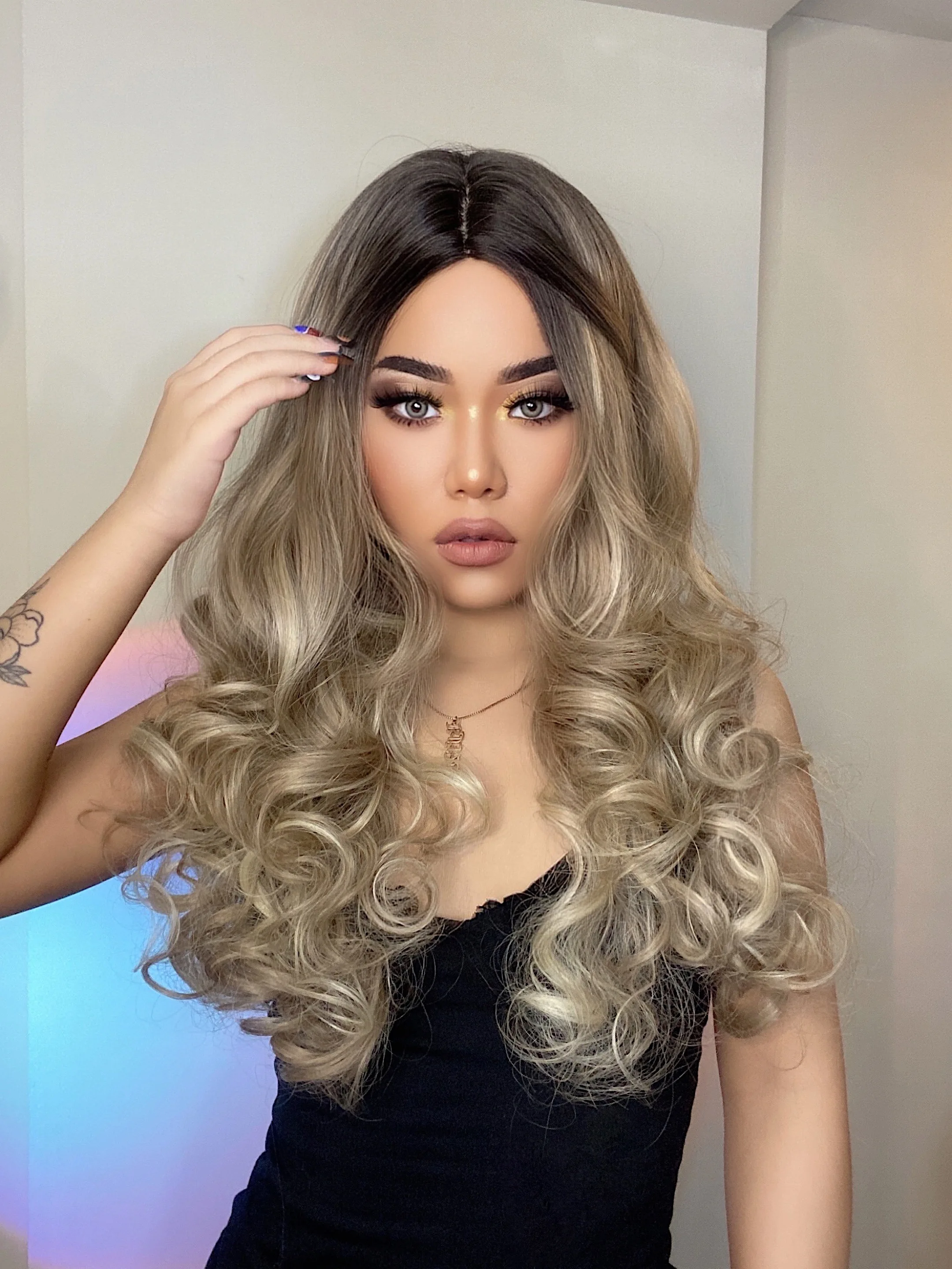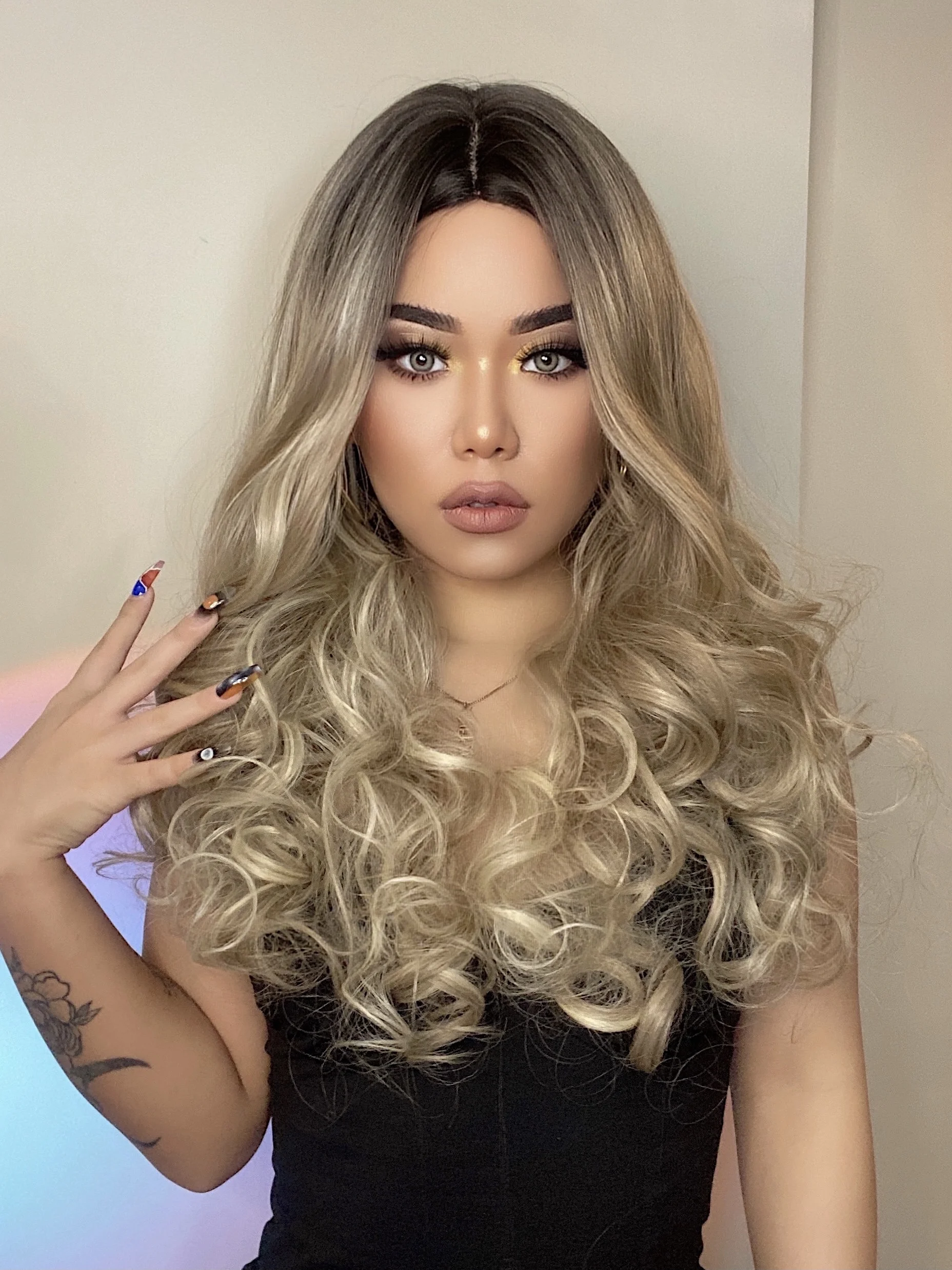 Длинные вьющиеся волнистые волосы LOUIS FERRE, светлые синтетические парики с эффектом омбре для чернокожих женщин, термостойкие натуральные парики для косплея с темными корнями