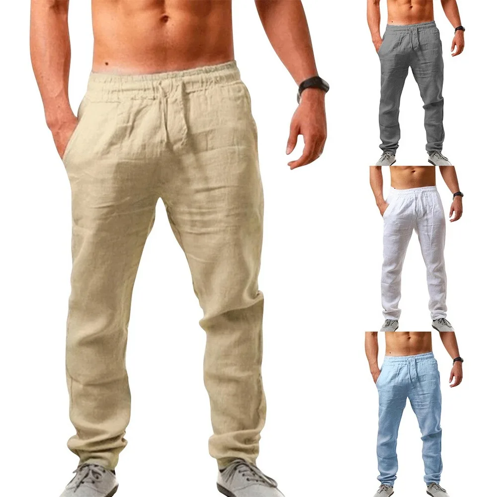 Брюки мужские из хлопка и льна, быстросохнущие дышащие однотонные льняные штаны, уличный Повседневный удобный костюм, лето